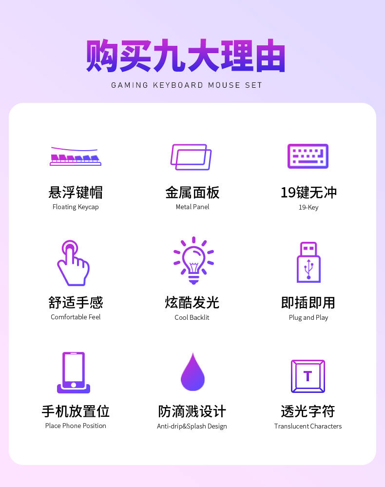 • YK845-white 혼합 조명 [키보드 마우스 2 피스 세트] 와 노브