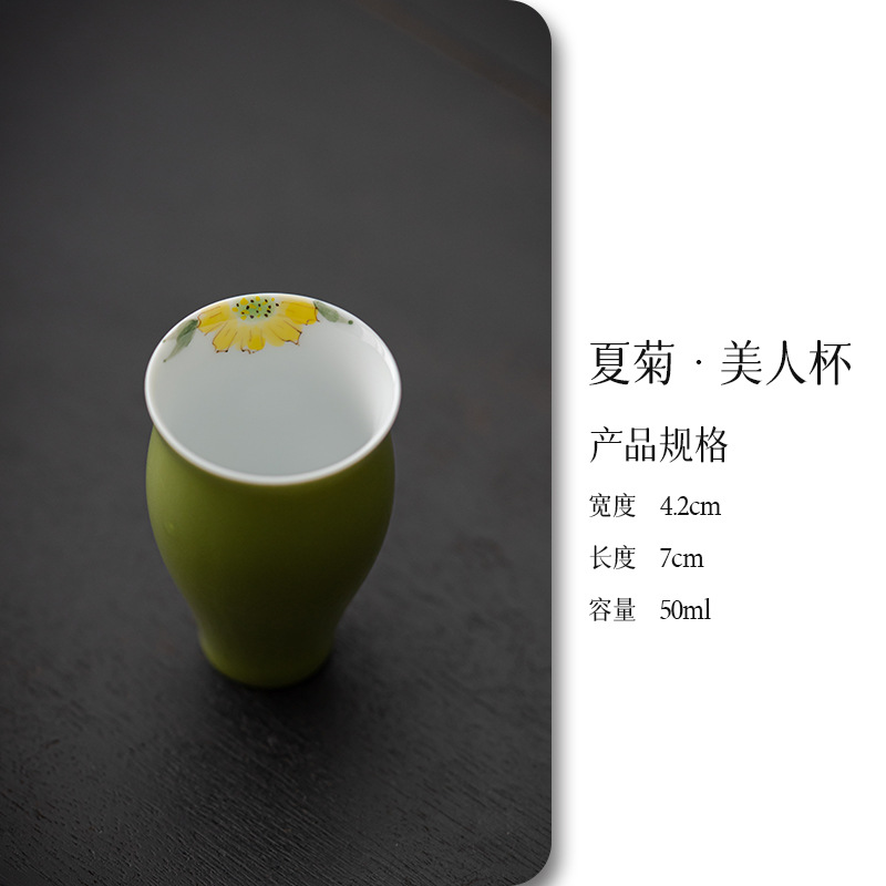 옛날 손으로 만회-그린 차 컵 쿵푸 차 세트 세라믹 마스터 컵 개별 싱글 컵 중국 소 신선한 뷰티 컵