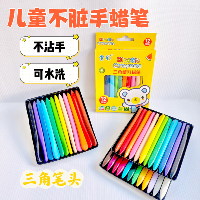 삼각형 플라스틱 크레용 어린이 더러운 손 빨 유화 스틱 12/24/36 컬러 유치원 브러시 컬러 펜스토어 가기