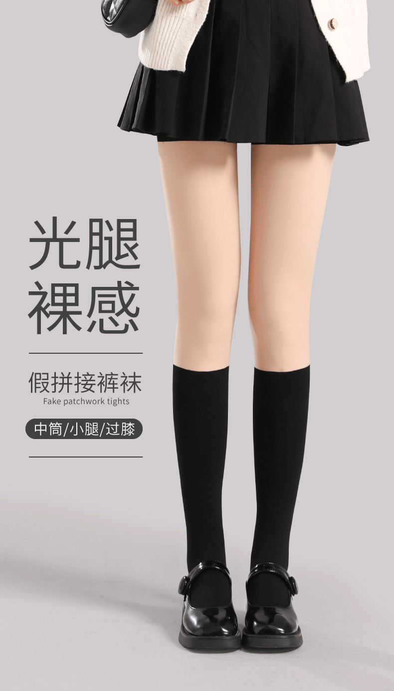 拼接丝袜光腿神器女假两件春秋冬加绒打底裤连裤假大腿黑色过膝袜