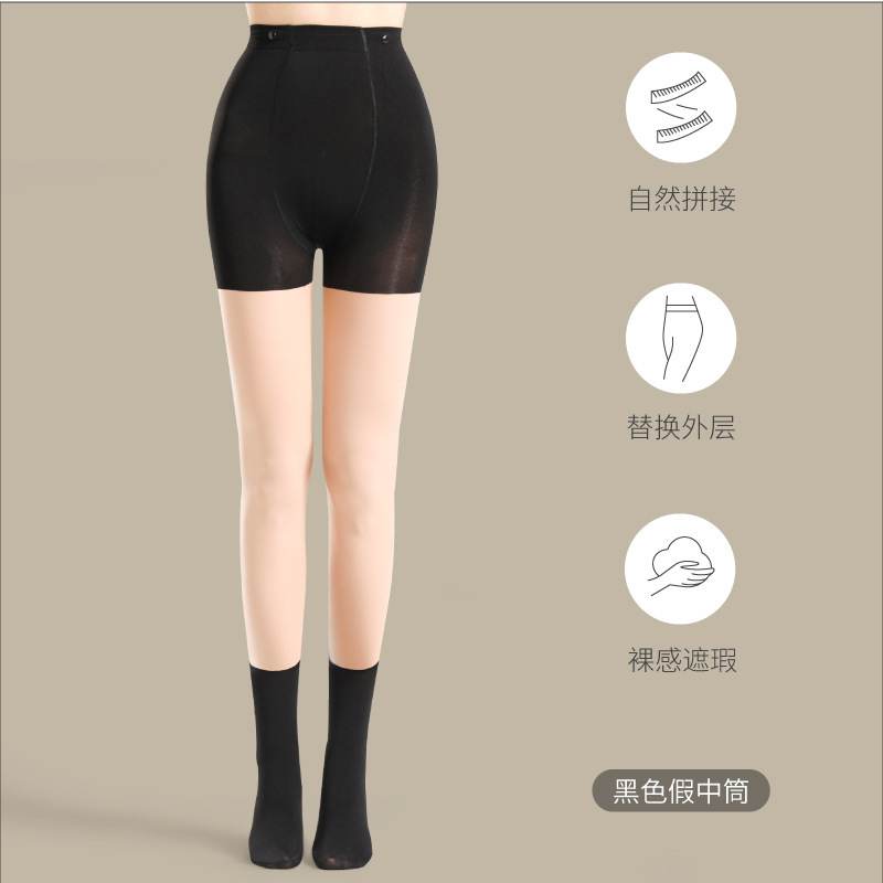 스티칭 실크 스타킹 가벼운 다리 아티팩트 여성용 가짜 투피스 봄 가을과 겨울 기모 레깅스 바지 가짜 허벅지 검은 무릎 위 양말