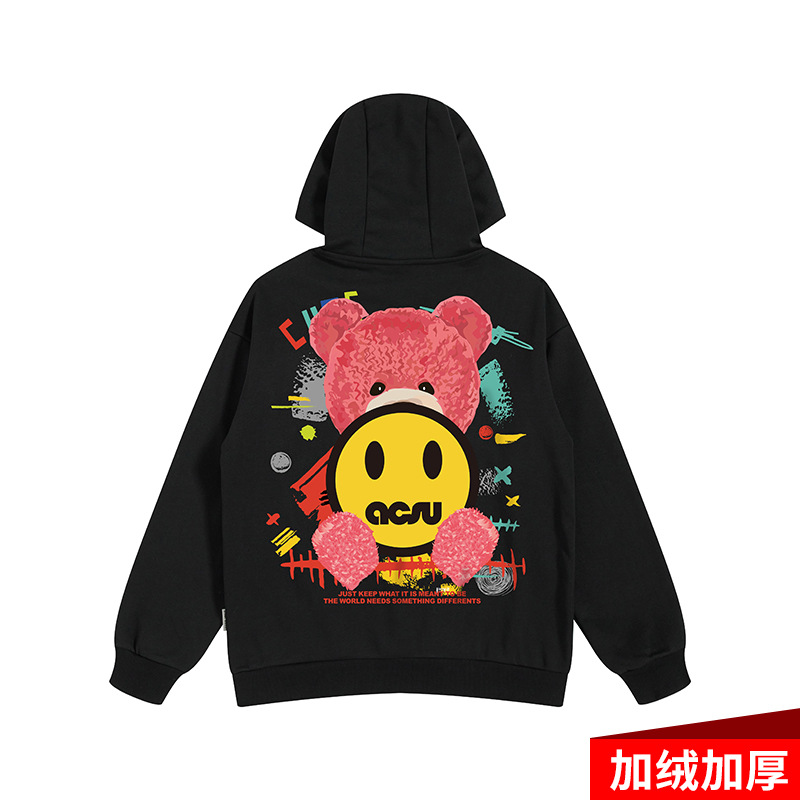 유럽과 미국의 트렌디 브랜드 곰 기모 스웨터 남자의 봄과 가을 후드 느슨한 트렌디 지방 플러스 사이즈 까마귀 특대 재킷