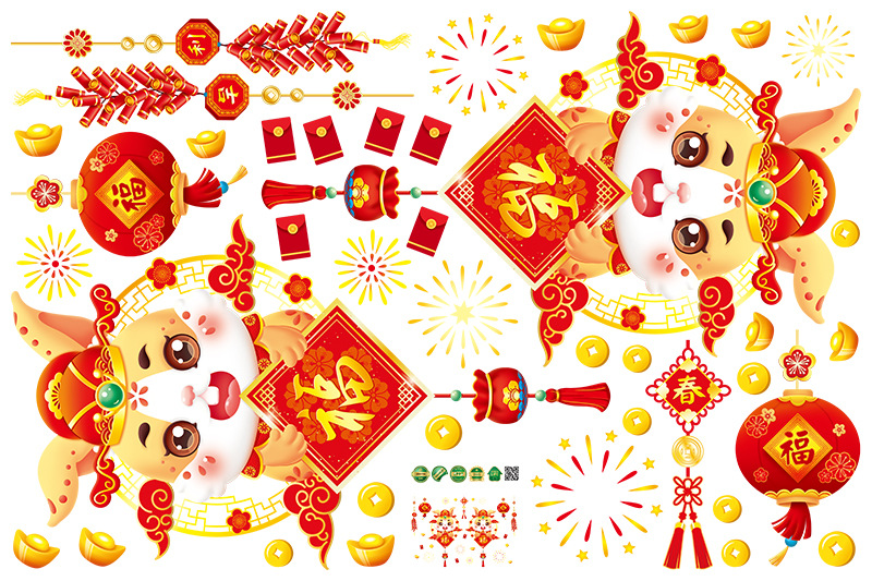 SKJD9417ds 토끼 새해 스타일 벽 스티커 창 유리 문 및 Windows 욕실 입구 레스토랑 배경스토어 가기