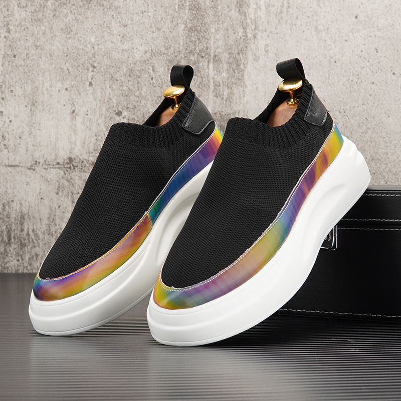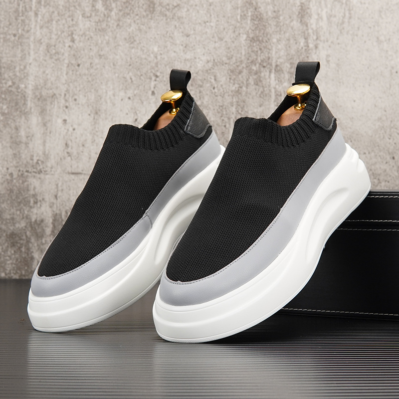 양말 신발 남자의 가을 유행 스트레치 니트 메쉬 신발 두꺼운 밑창 높이 신발 게으른 슬립온 로퍼