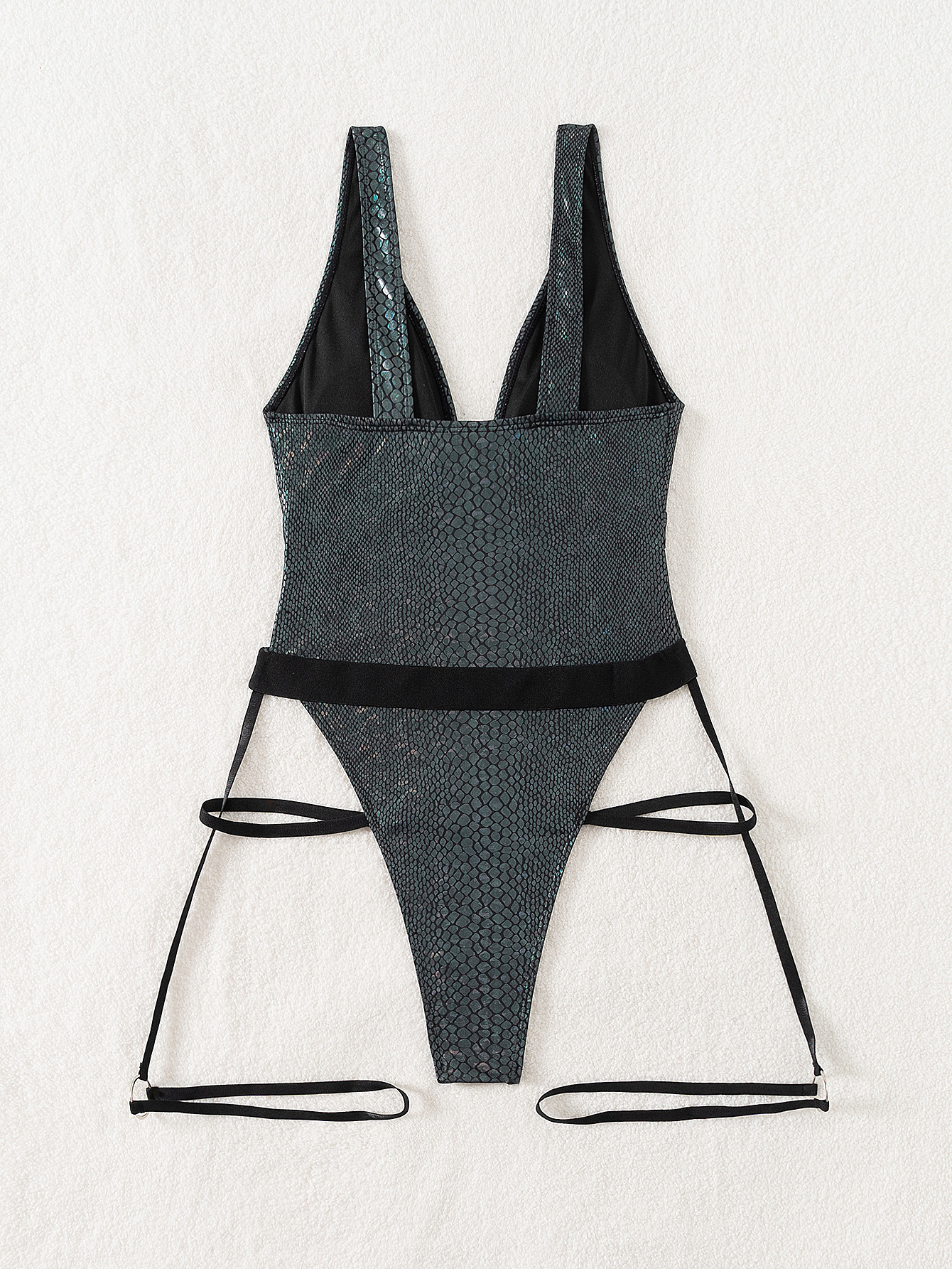 유럽과 미국의 새로운 깊은 V 섹시 타이트 원피스 수영복 금박 메쉬 바느질 여성의 비키니 비키니 재고스토어 가기
