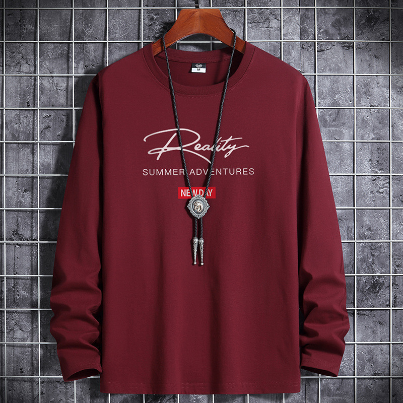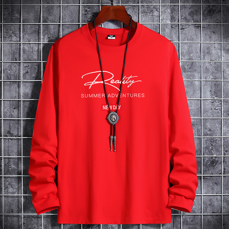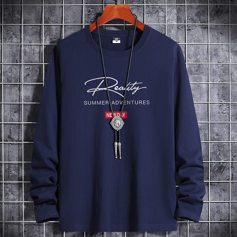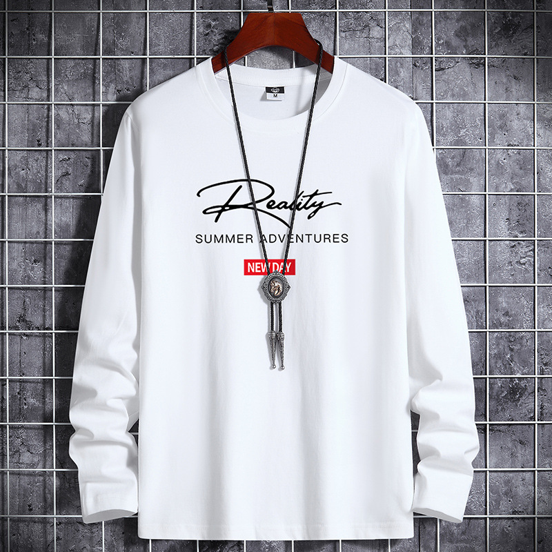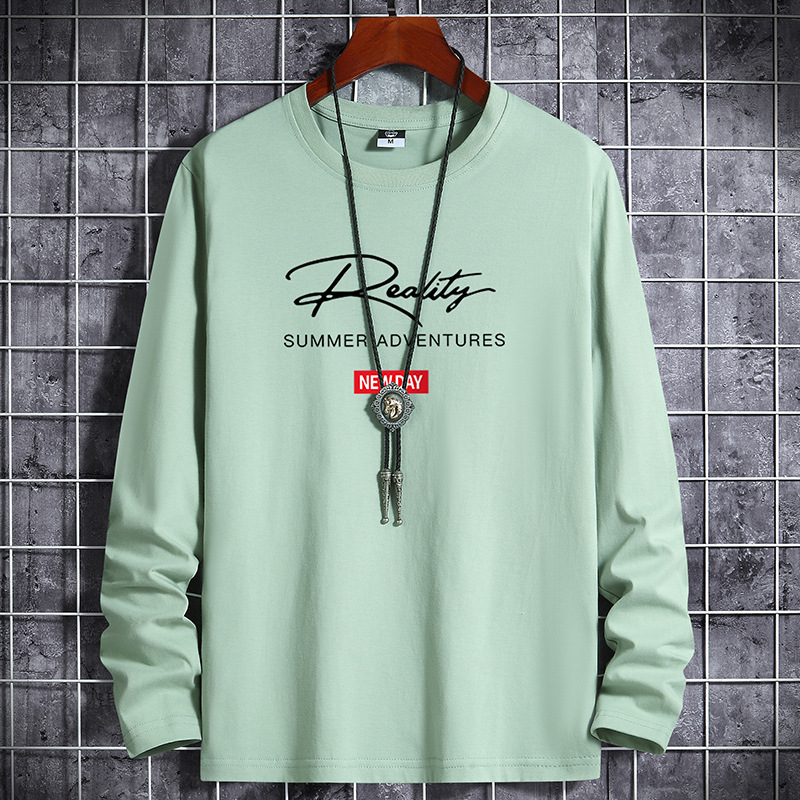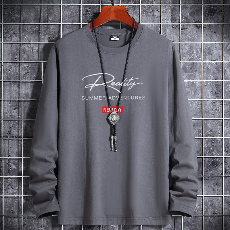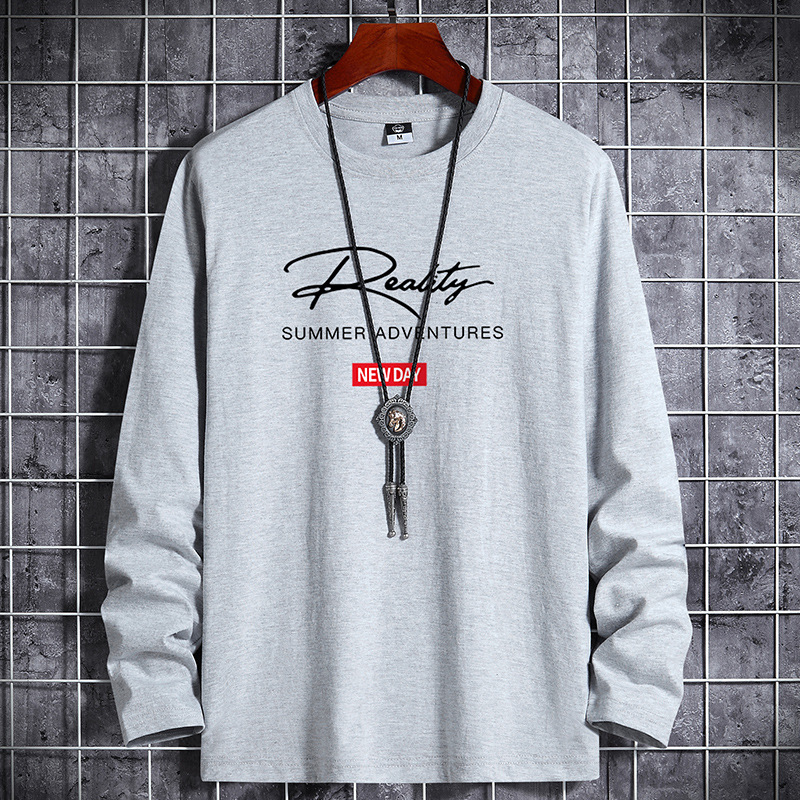 남성용 긴팔 티셔츠 남성용 여름 트렌디 브랜드 프린트 라운드 넥 베이스 셔츠 청소년 탑 의류 티셔츠 봄과 가을 순면