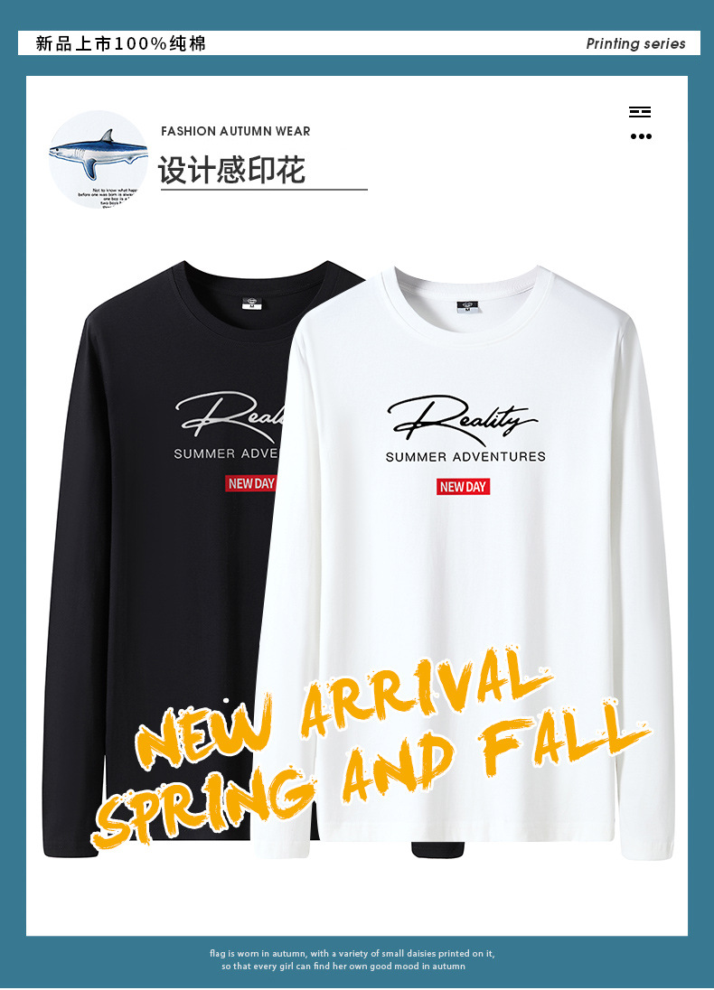 남성용 긴팔 티셔츠 남성용 여름 트렌디 브랜드 프린트 라운드 넥 베이스 셔츠 청소년 탑 의류 티셔츠 봄과 가을 순면스토어 가기