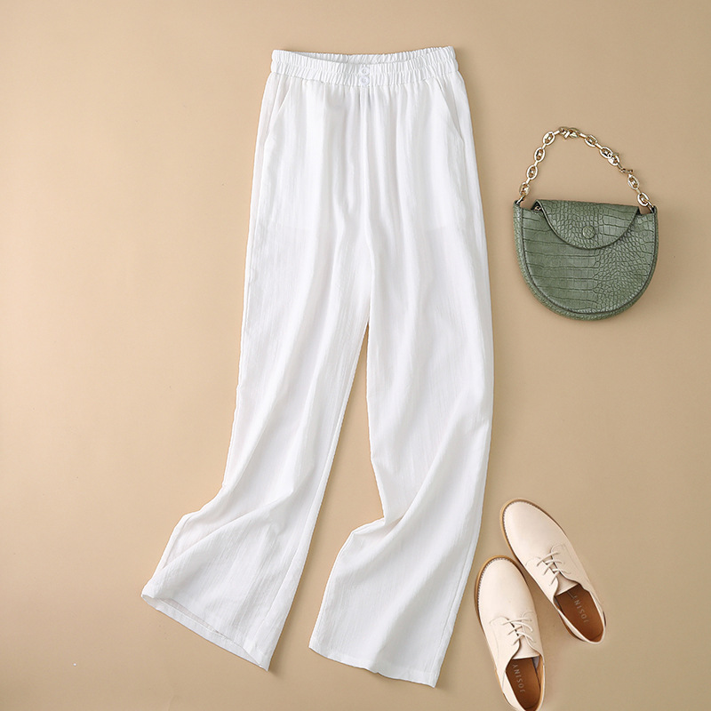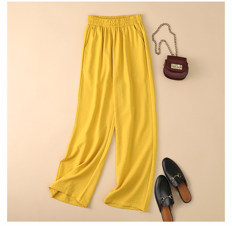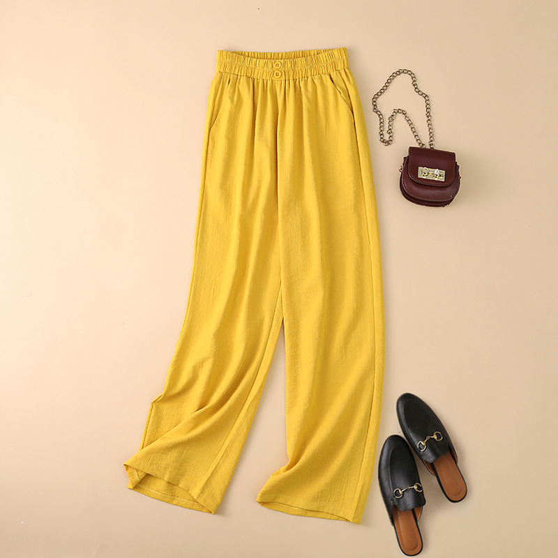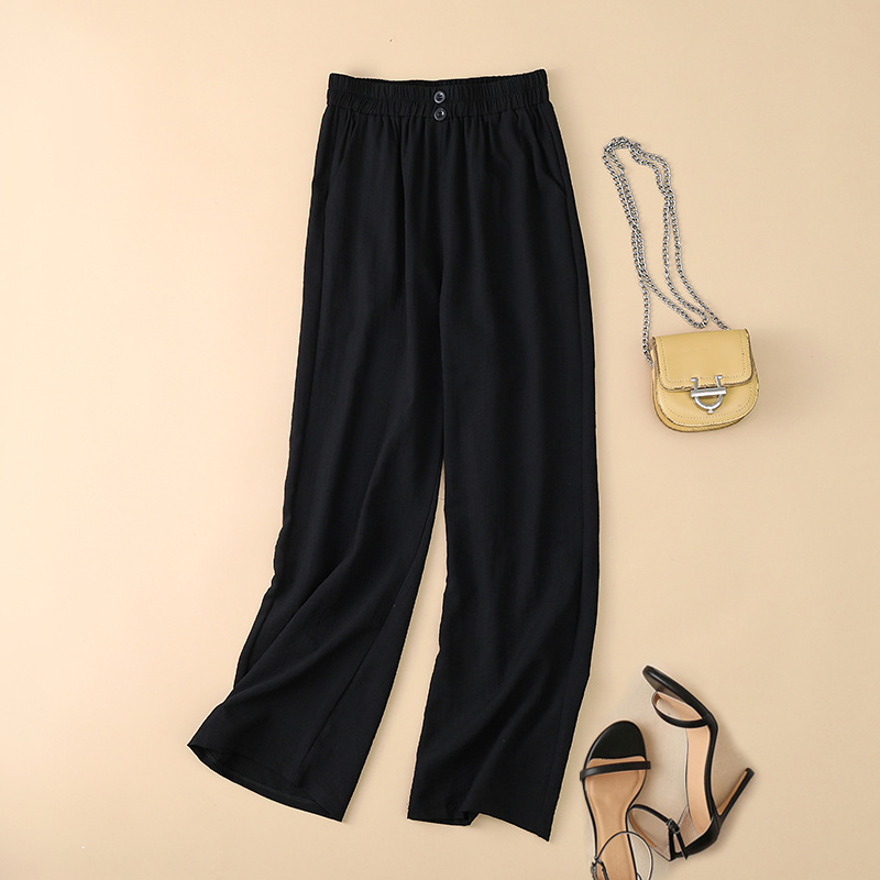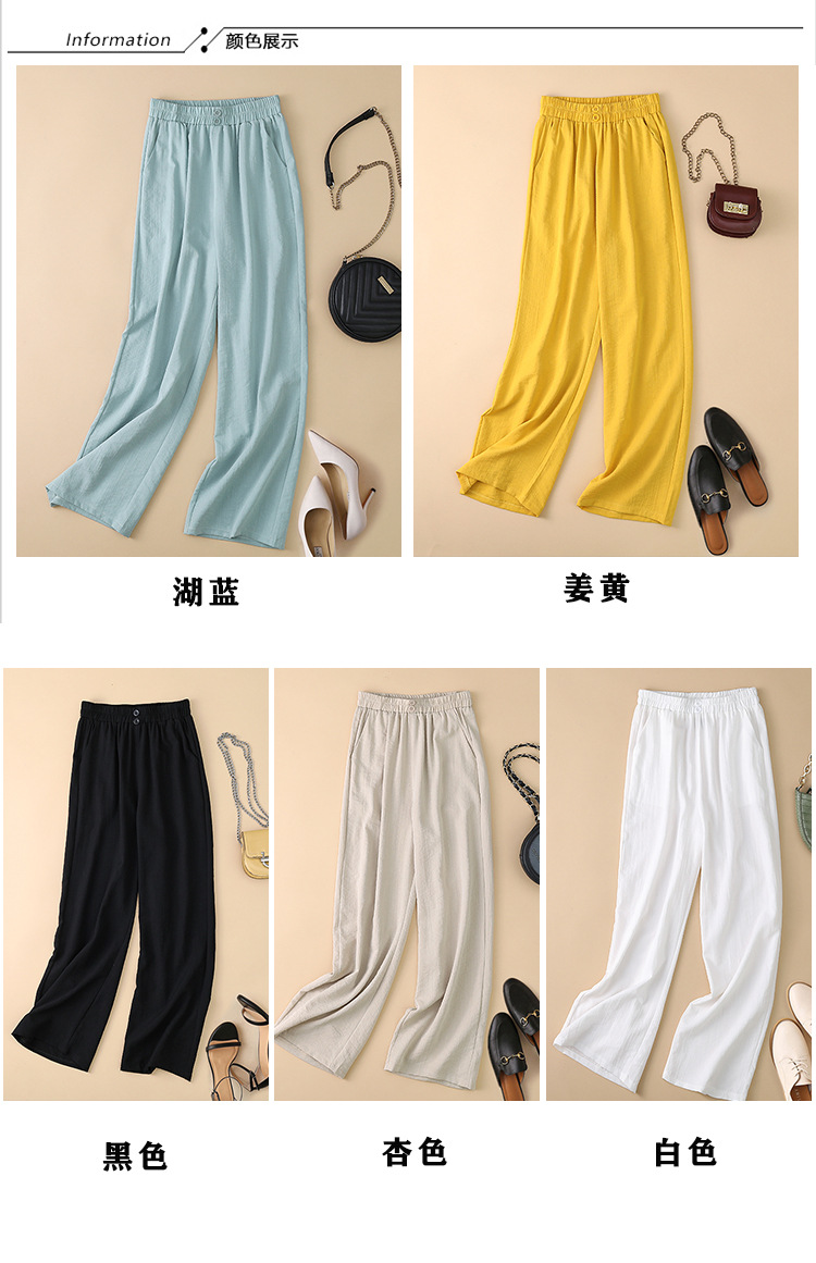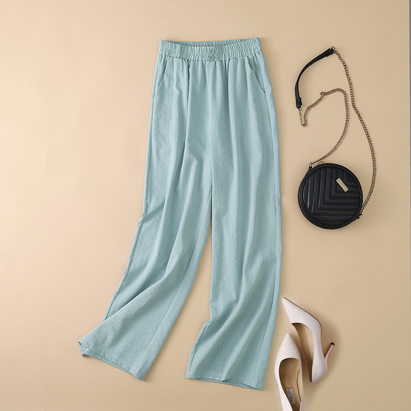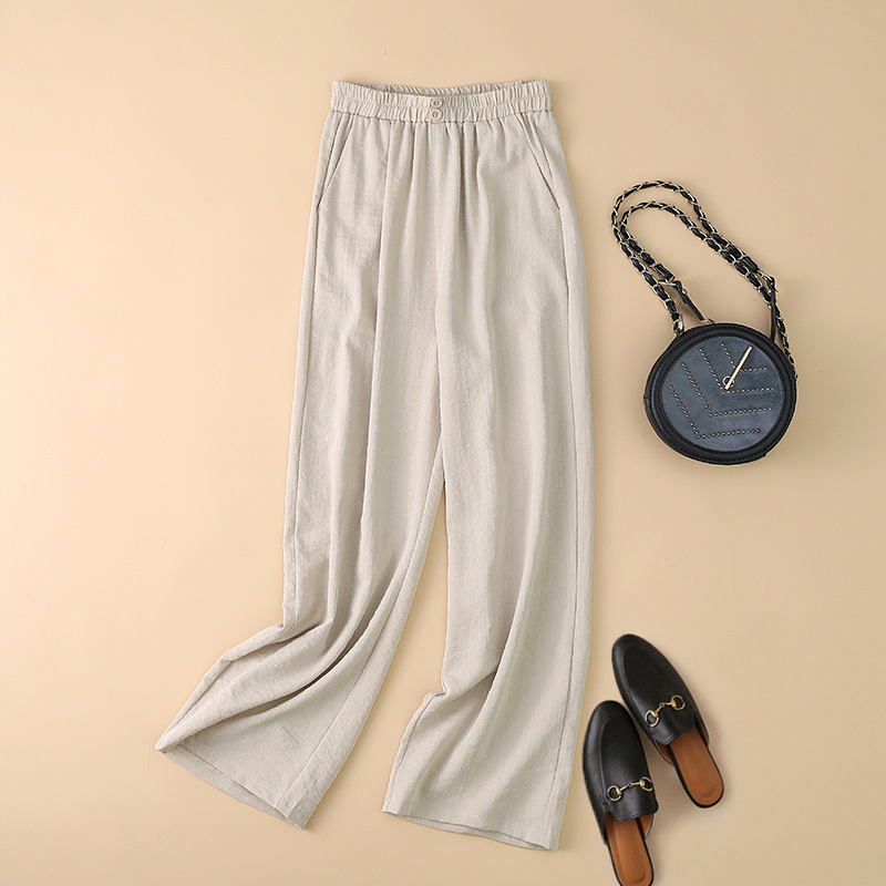 봄과 여름 새로운 넓은 다리 바지 여성의 높은 허리 드레이핑 느슨한 슬리밍 다재다능한면과 린넨 여성용 캐주얼 바지스토어 가기