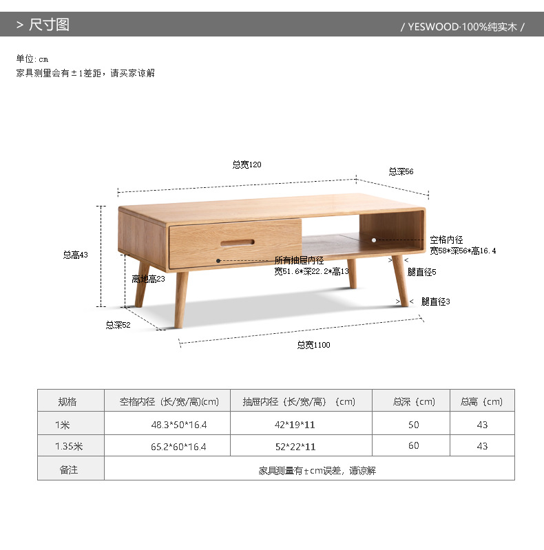 전체 단단한 나무 커피 테이블 간단한 현대 가정용 오크 가구 북유럽 스타일 작은 아파트 거실 로그 티 테이블