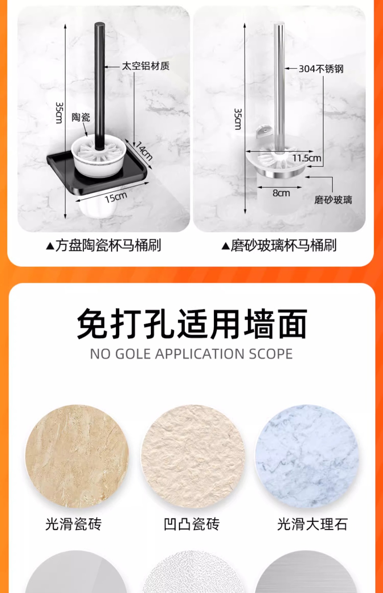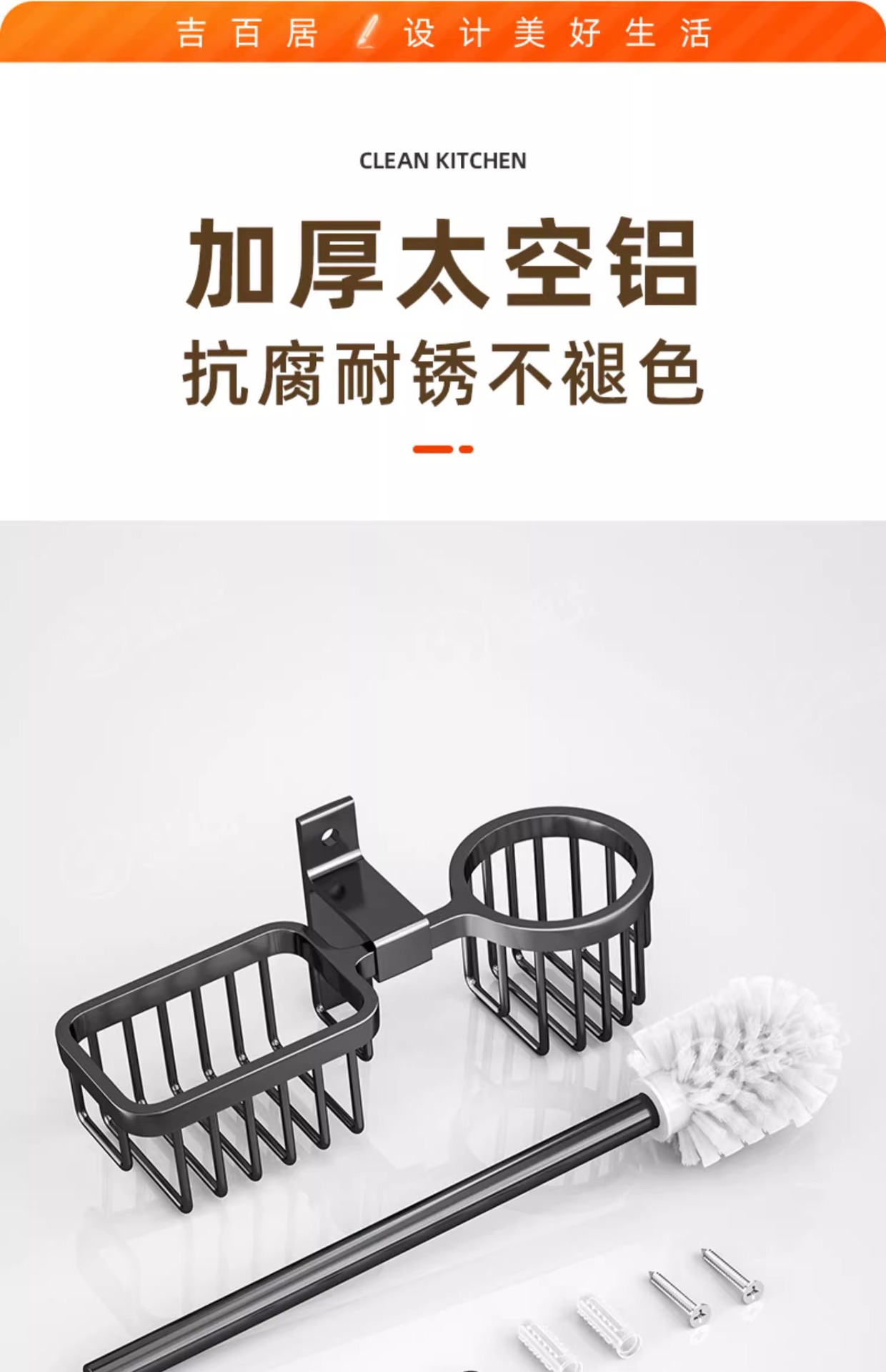 공장 공급 화장실 욕실 화장실 브러시 랙 저장 유형 비 천공 벽 매달려 죽은 각도 랙