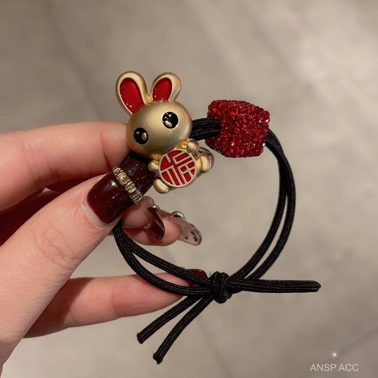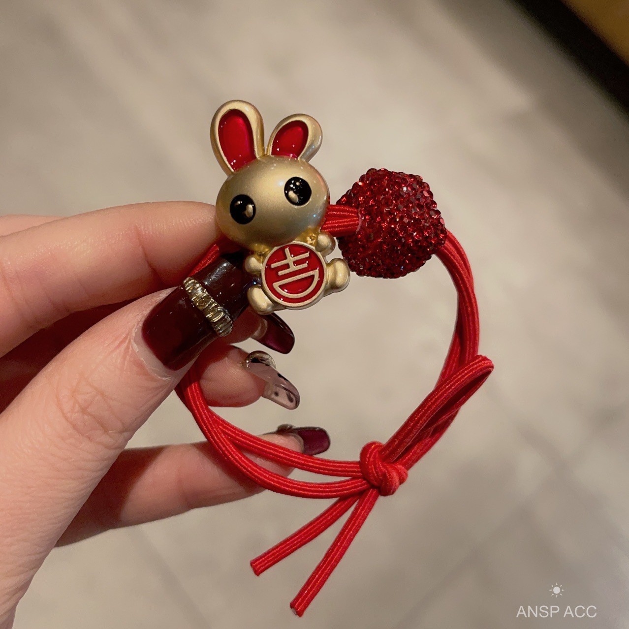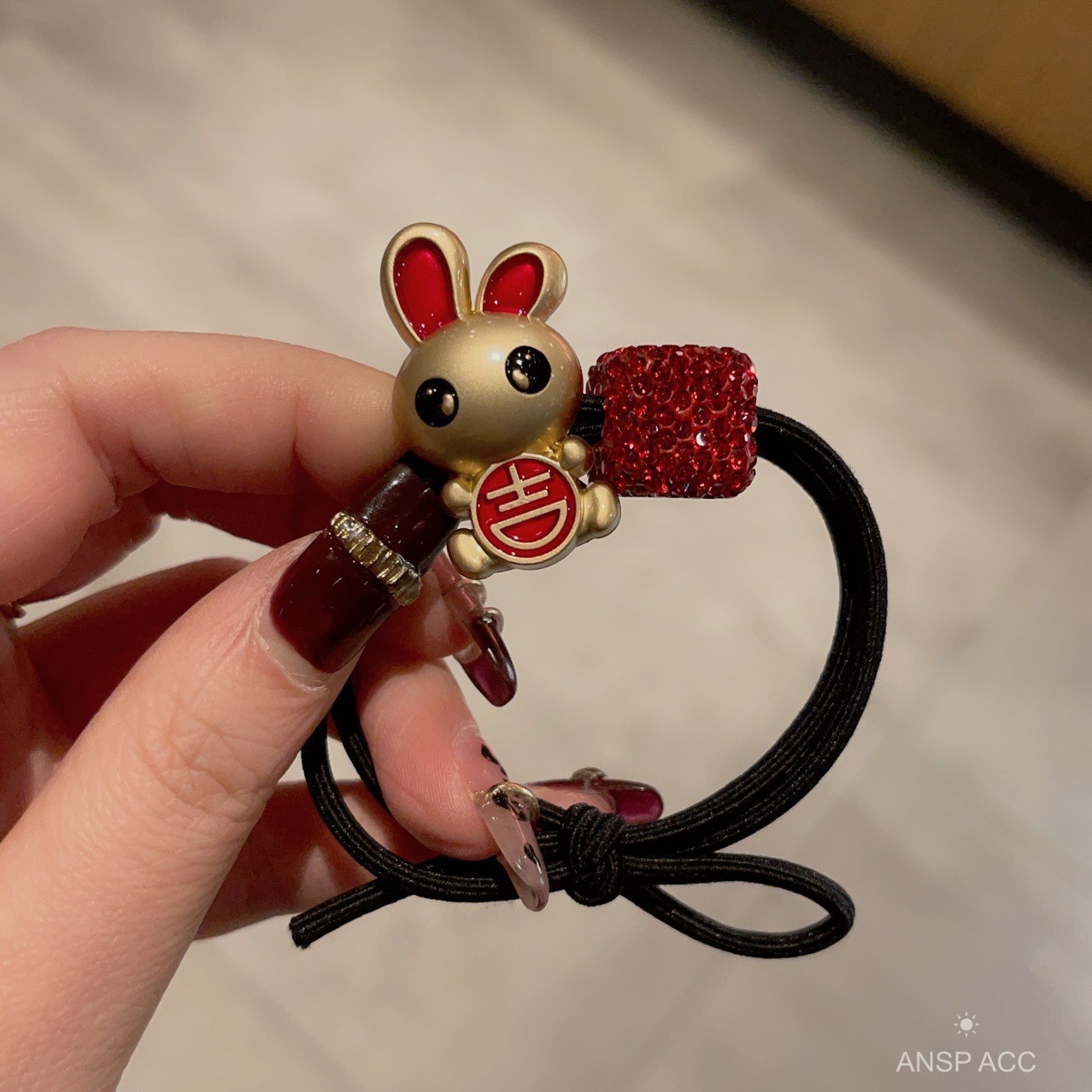 토끼 합금 헤드 로프의 해의 한국어 버전 새해 토끼 헤어 링 전송 전체 다이아몬드 레드 스퀘어 여성 만화 헤어 로프스토어 가기
