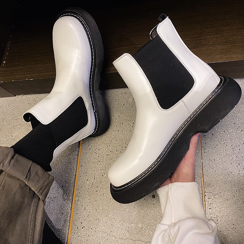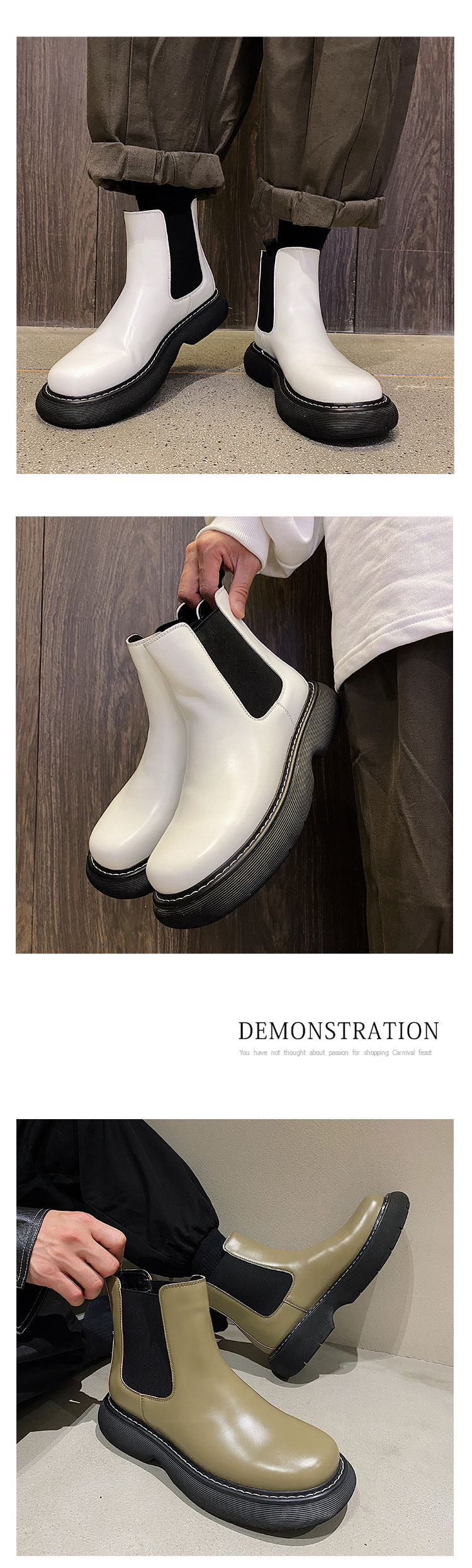 트렌디 브랜드 첼시 부츠 영국 스타일 짧은 부츠 미드 하이 두꺼운 바닥 증가 심플 남성 트렌디 인 정품 가죽 마틴 부츠스토어 가기