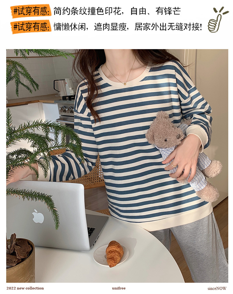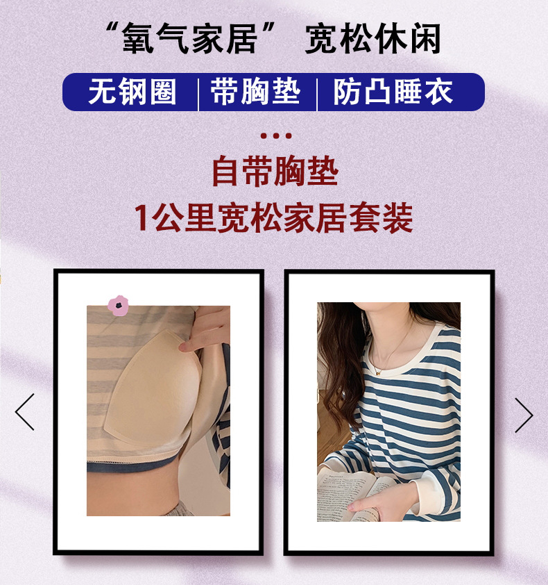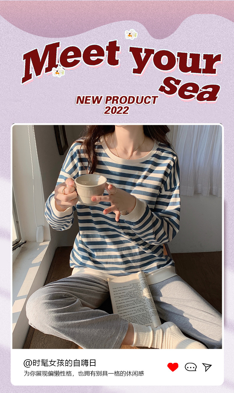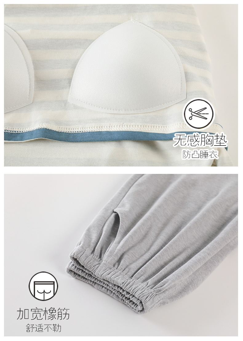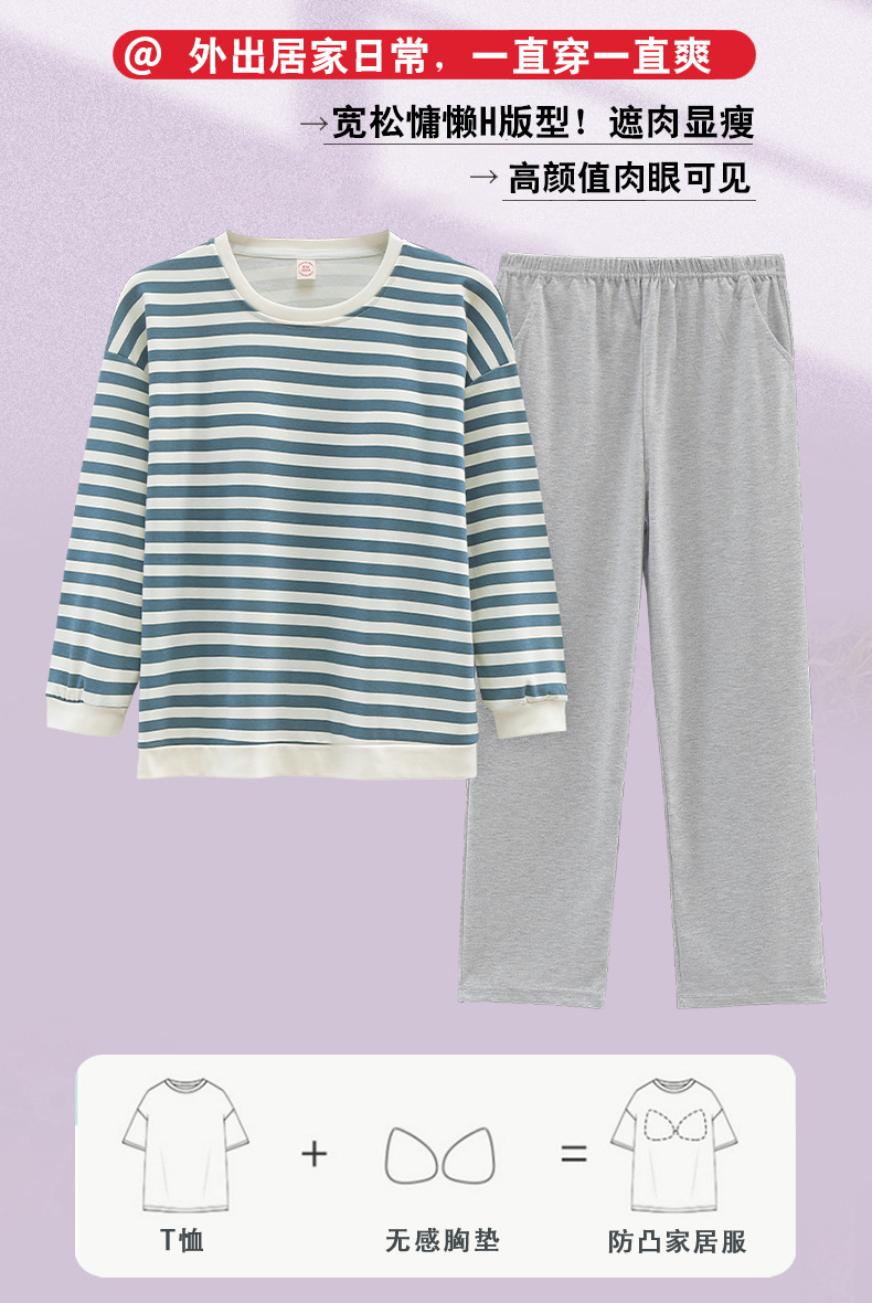 가슴 패드가있는 잠옷 봄 여성의 긴 소매 2023 간단한 봄과 가을 줄무늬 소녀의 가정복 세트 면 일본식스토어 가기