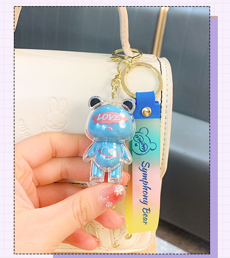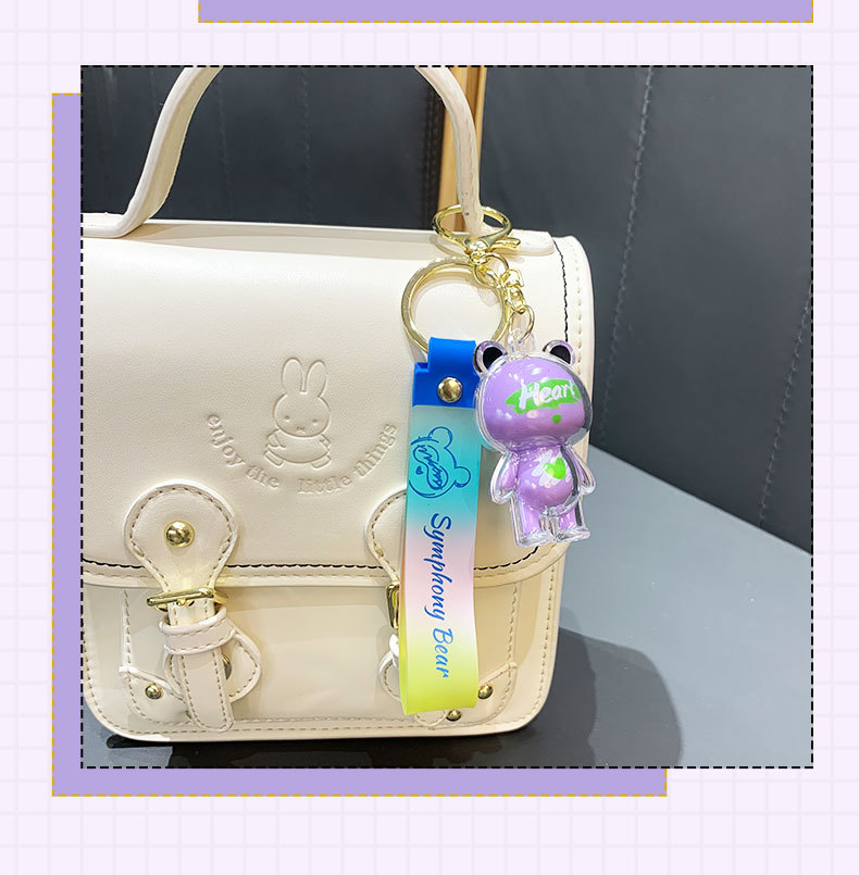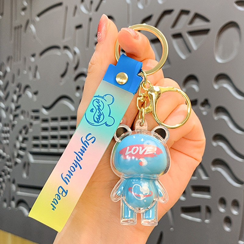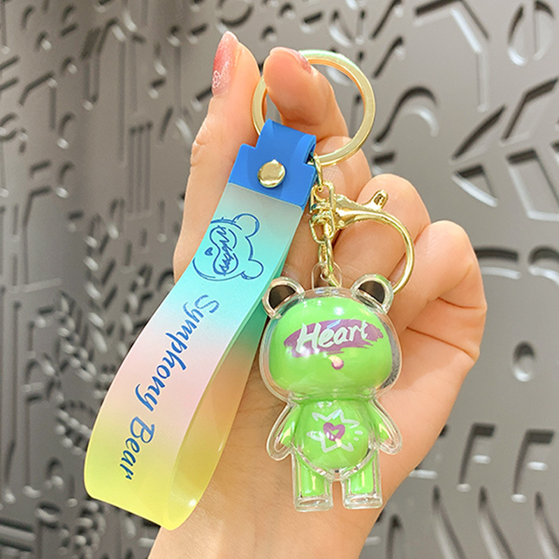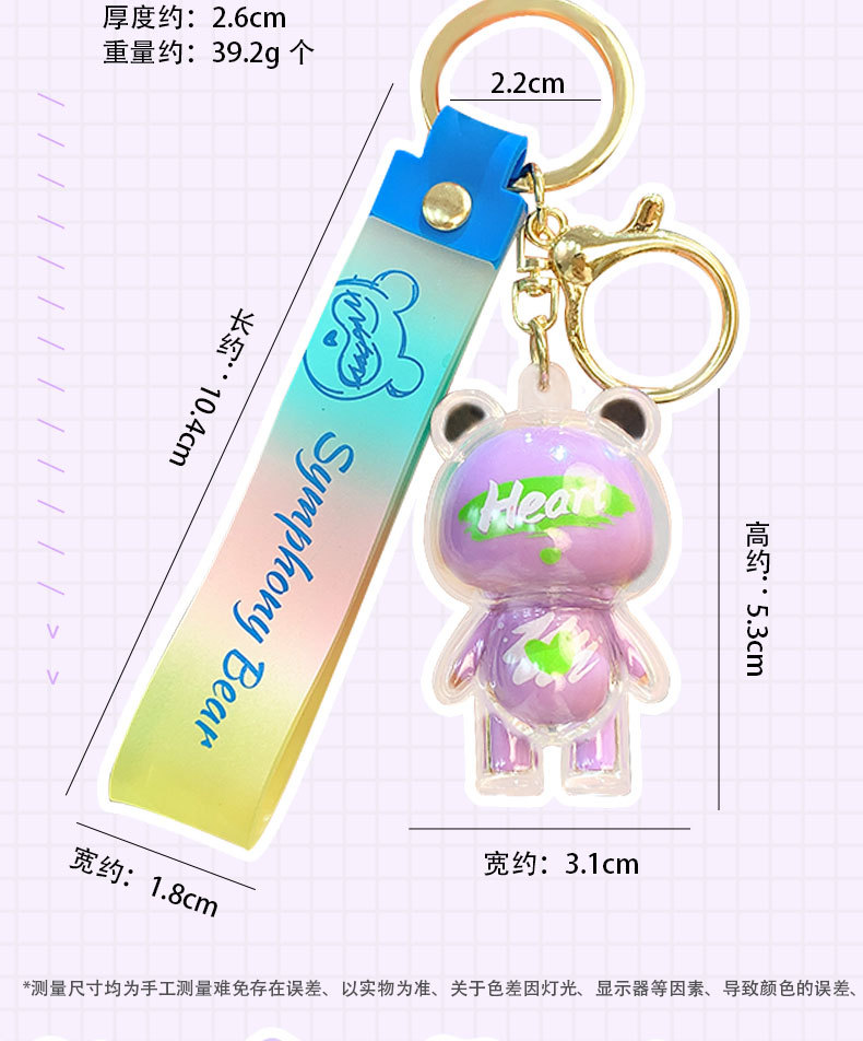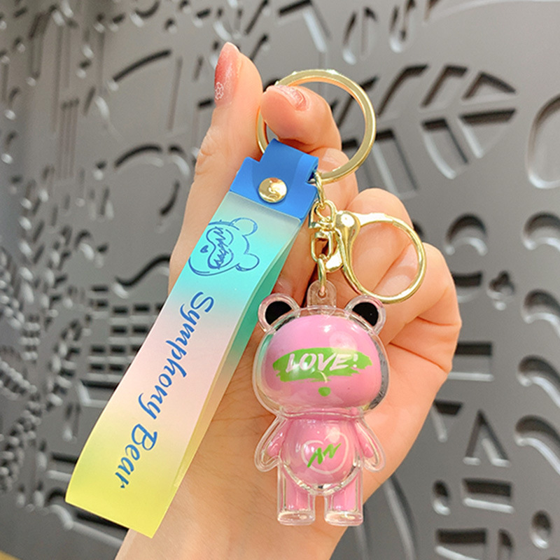 창조적 인 다채로운 아크릴 심장 곰 열쇠 고리 펜던트 귀여운 만화 커플 자동차 액세서리 선물 도매