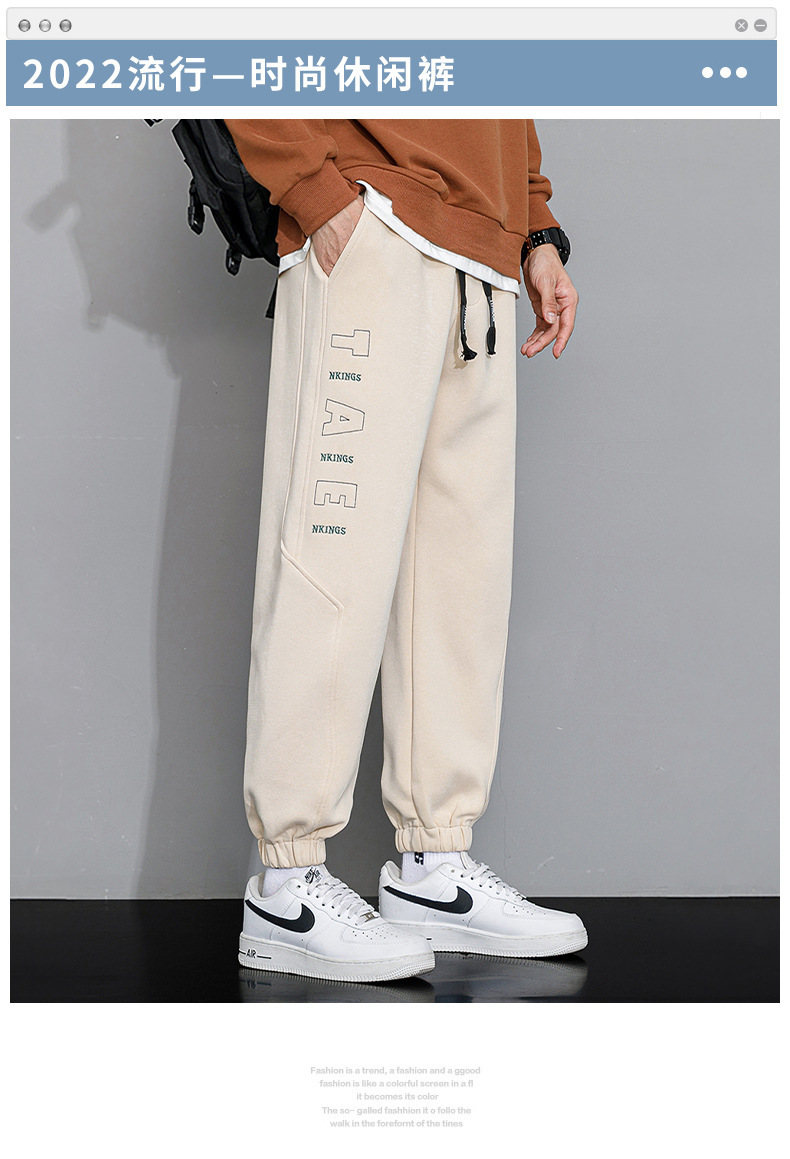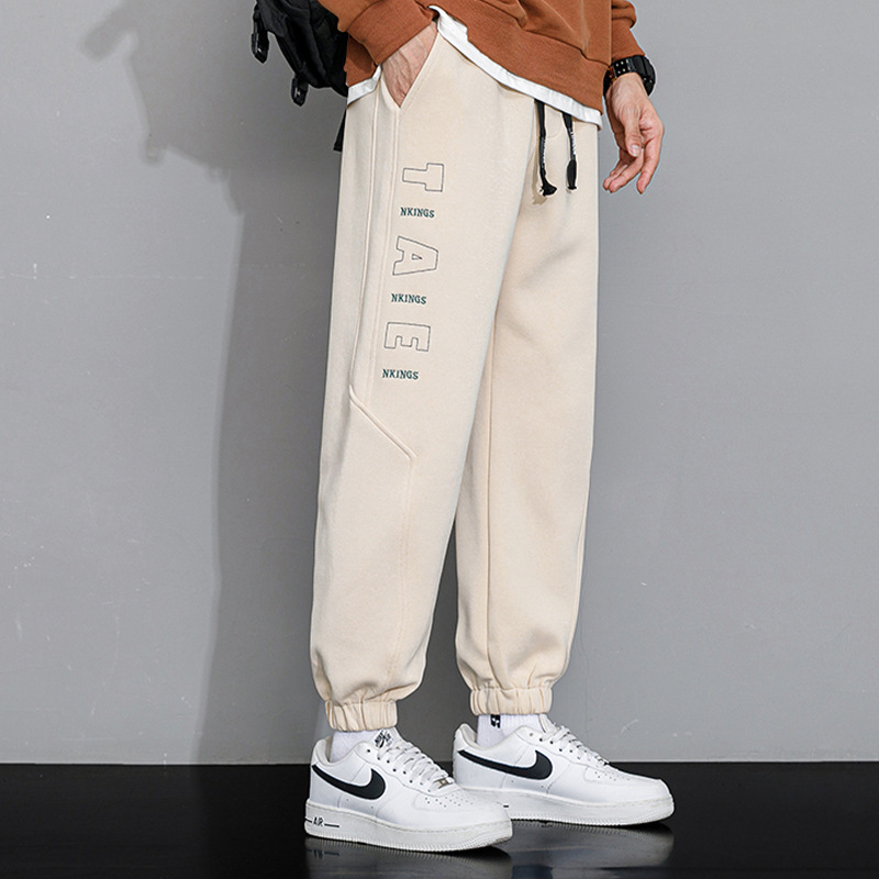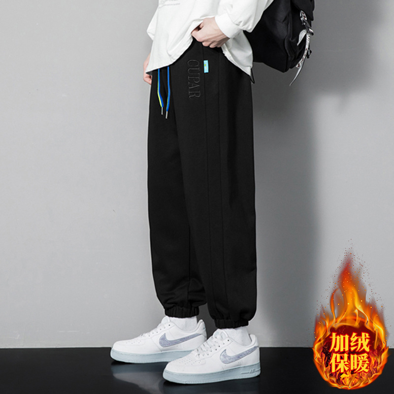 기모 바지 남자의 가을과 겨울 2022 새로운 패션 브랜드 캐주얼 바지 남성용 국가 패션 작업복 넥타이 스포츠 바지