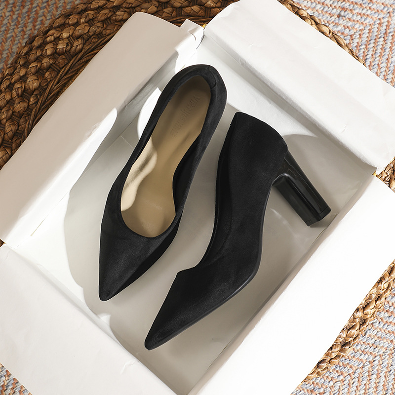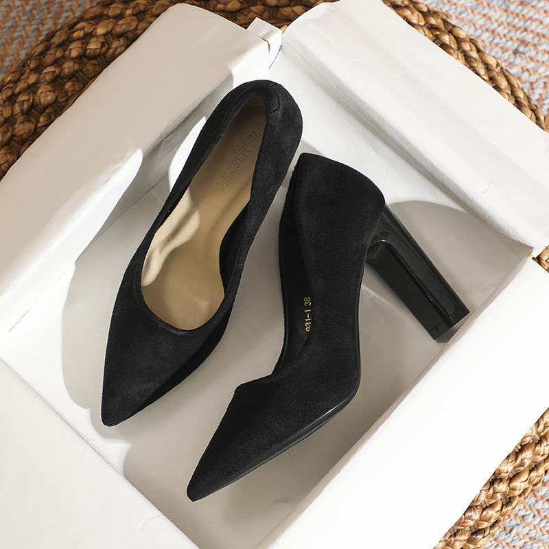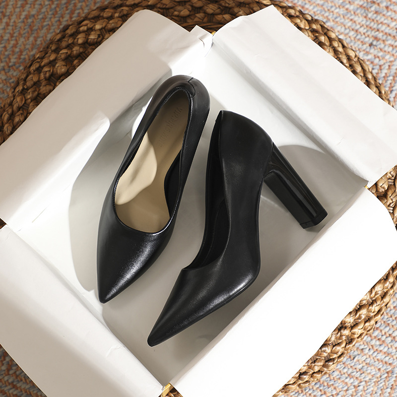 여성용 프렌치 스타일 포인티드 토 블랙 하이힐, 두꺼운 굽, 2025 봄 신상품, 여성용 다용도 통근화스토어 가기
