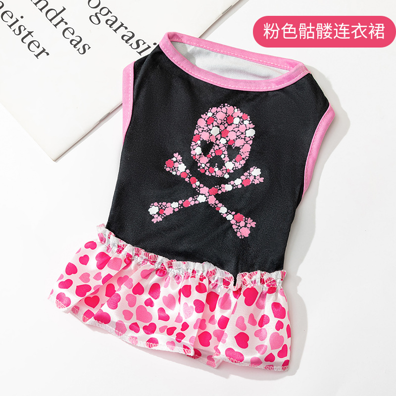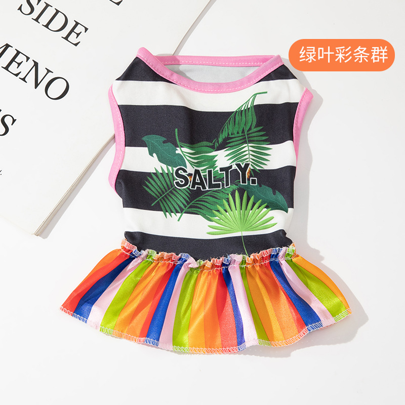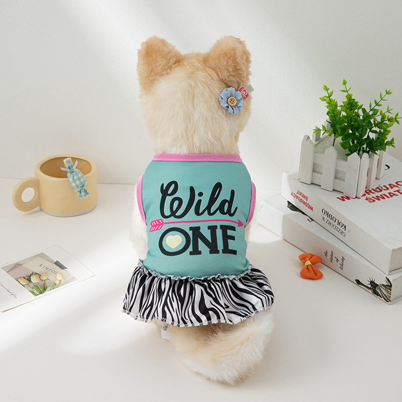 여름 신상 얇고 통기성 좋은 애완동물 의류, 강아지 귀여운 프린트 스커트, 강아지 스커트, 만화 스타일 애완동물 옷