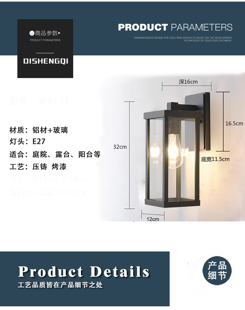 아메리칸 스타일 간단한 야외 방수 벽 램프 야외 발코니 복도 정원 안뜰 빌라 테라스 통로 외부 벽 램프스토어 가기