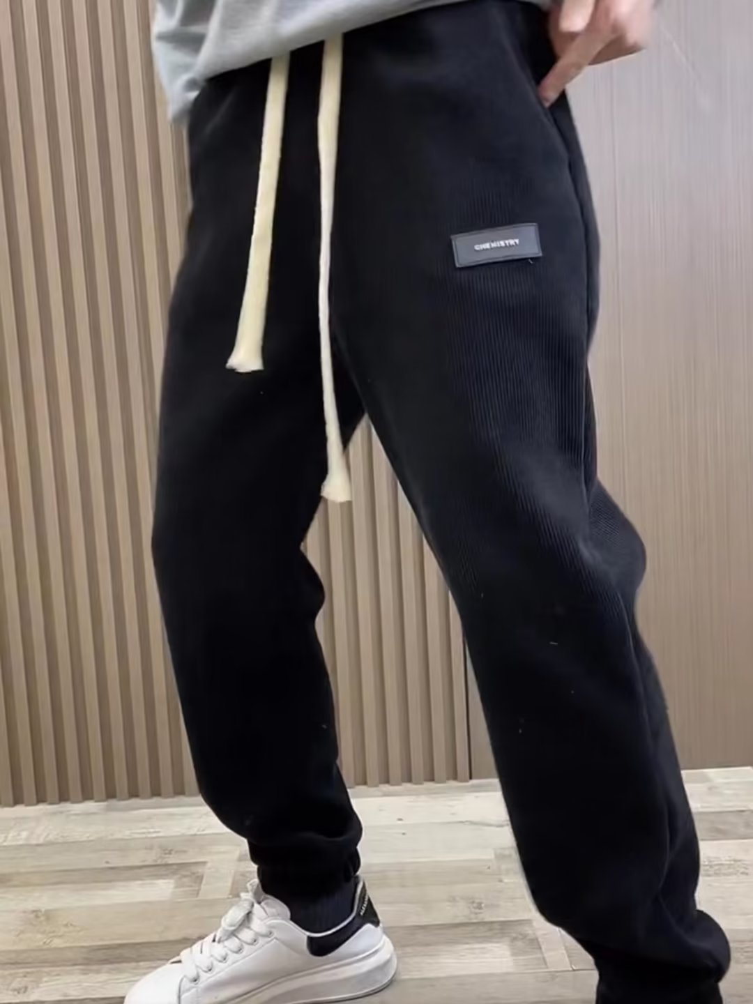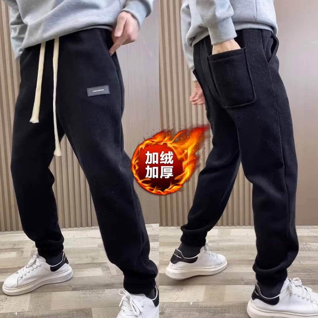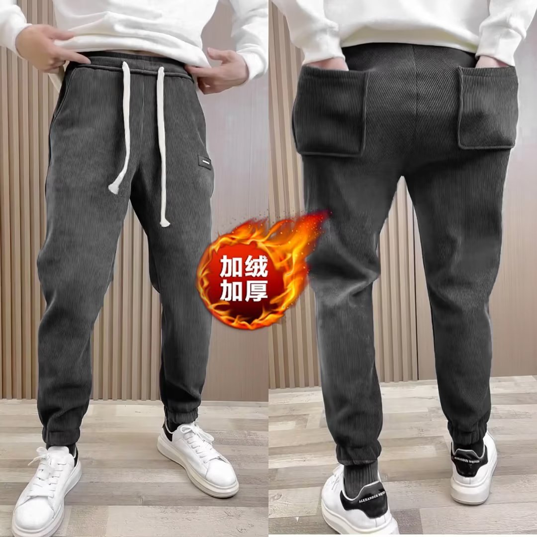 캐주얼 바지 심플 크롭 바지 일본 패션 겨울 느슨한 기모 두꺼운 유행 남성 패션 브랜드 모든 일치스토어 가기