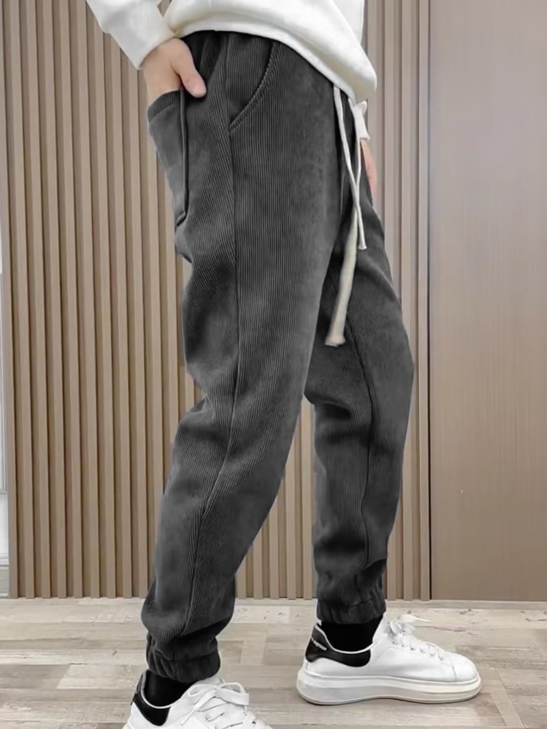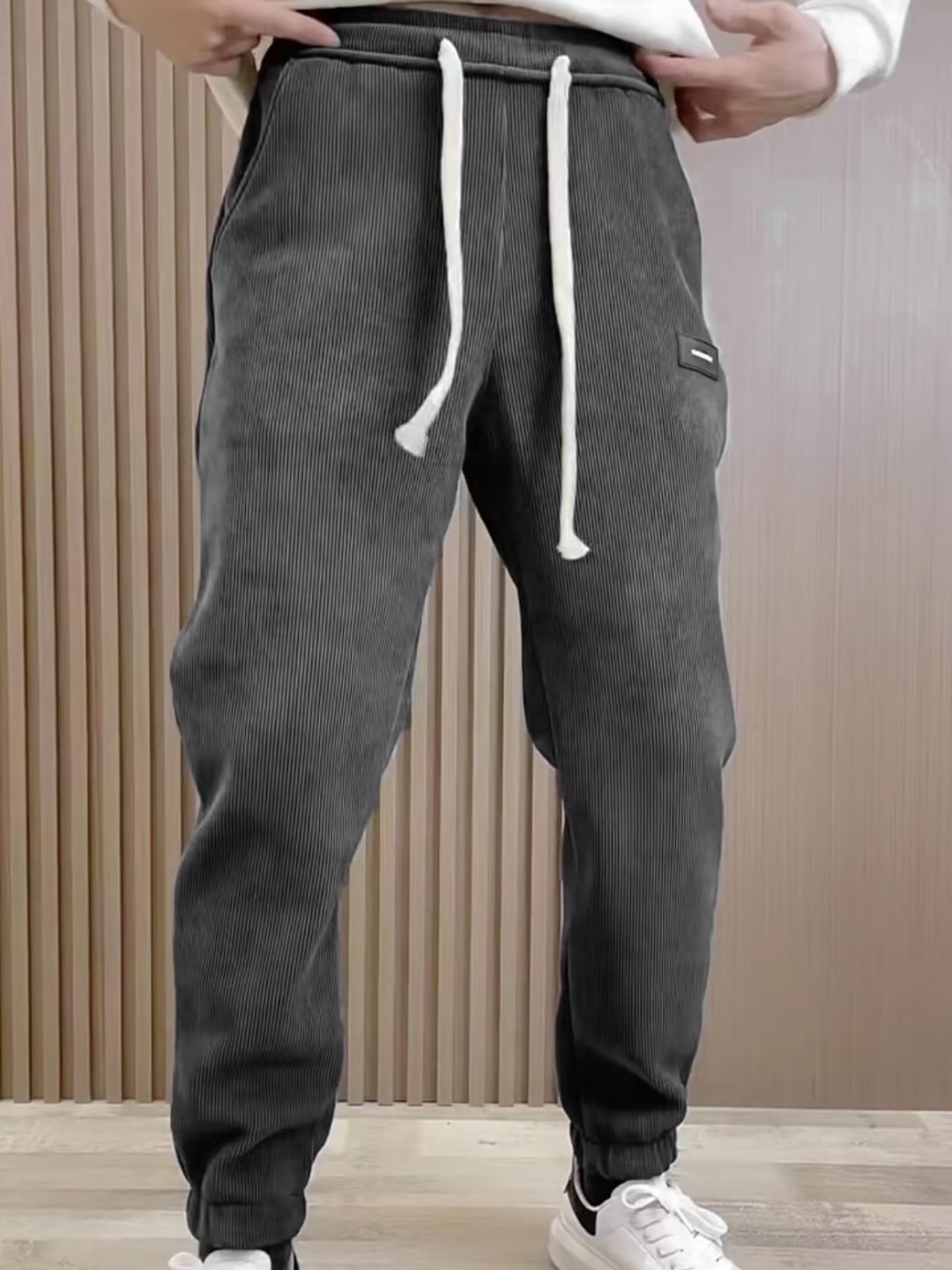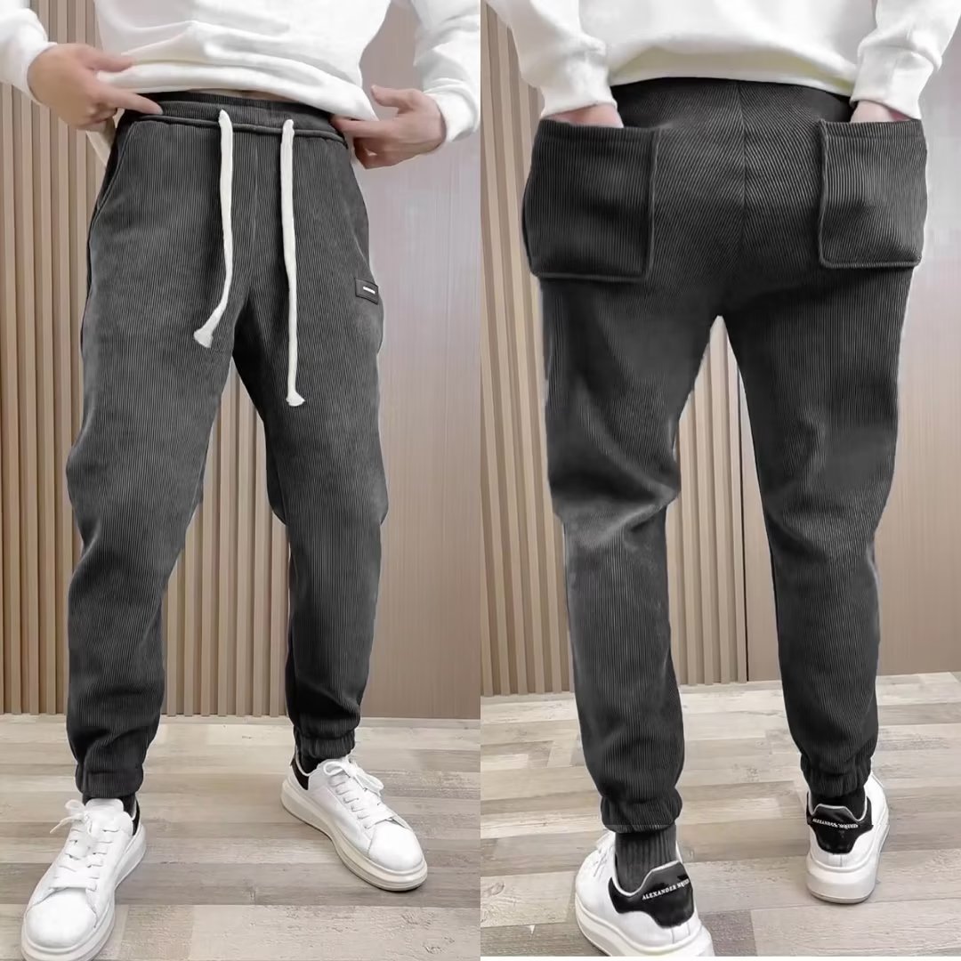 캐주얼 바지 심플 크롭 바지 일본 패션 겨울 느슨한 기모 두꺼운 유행 남성 패션 브랜드 모든 일치스토어 가기