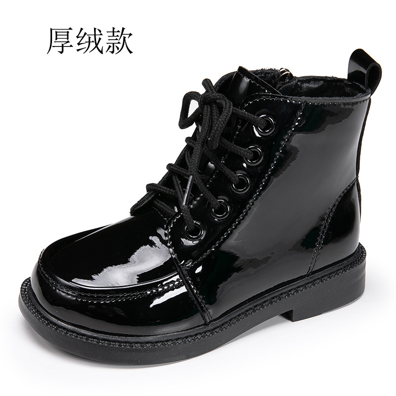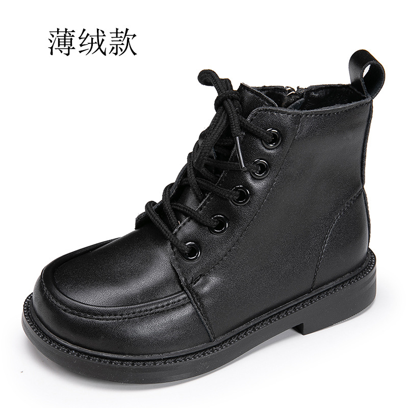 소년 '마틴 부츠 가을/겨울 2022 새로운 정품 가죽 기모 어린이 발목 부츠 중간 및 노인 어린이 영국 레이스 업 블랙 가죽 부츠