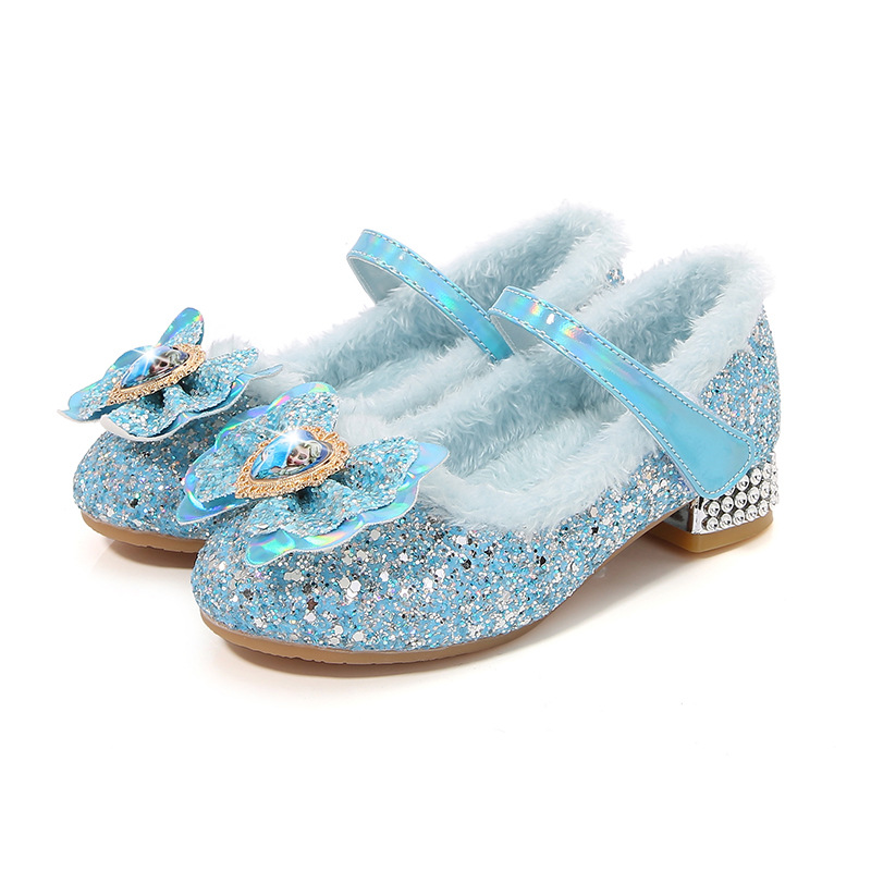 여자 신발 어린 소녀 하이힐 새로운 가을과 겨울 기모 아기 아이샤 공주 크리스탈 어린이 따뜻한 가죽 신발