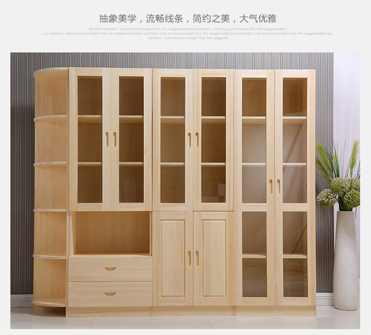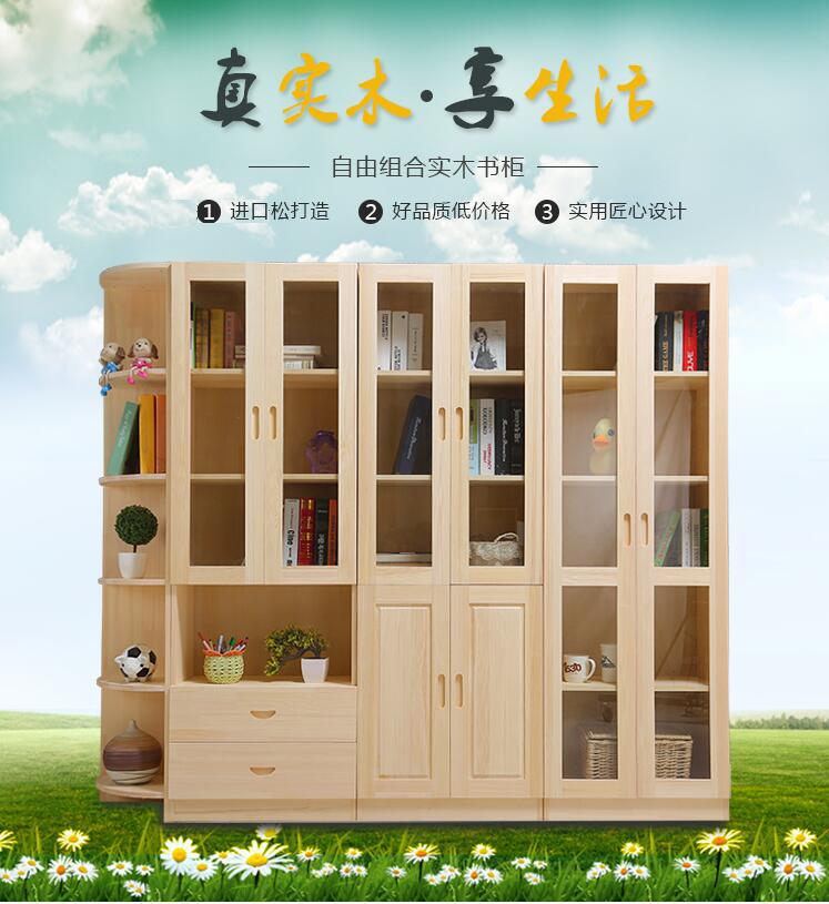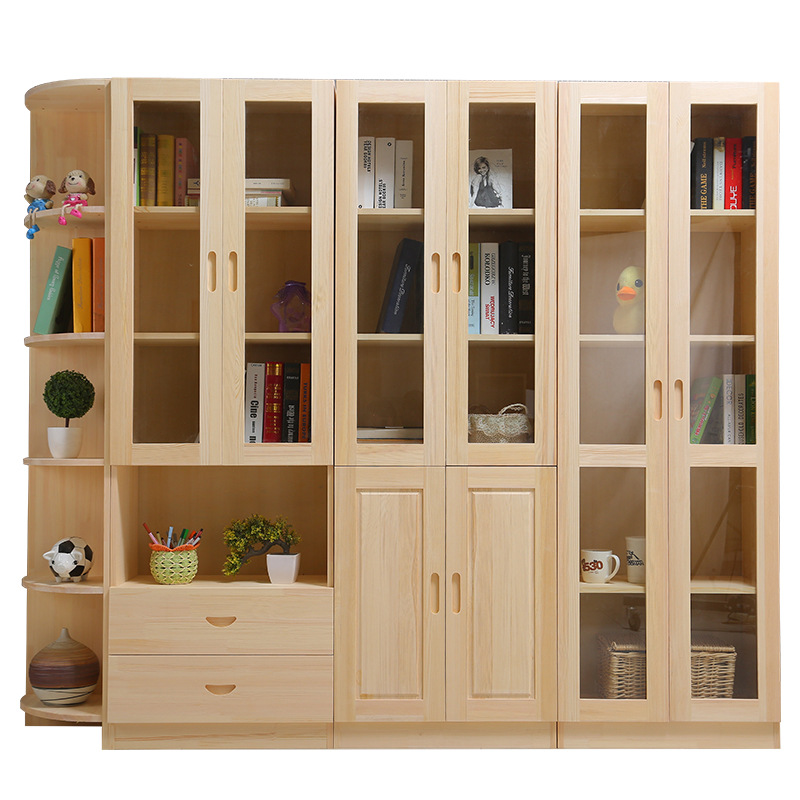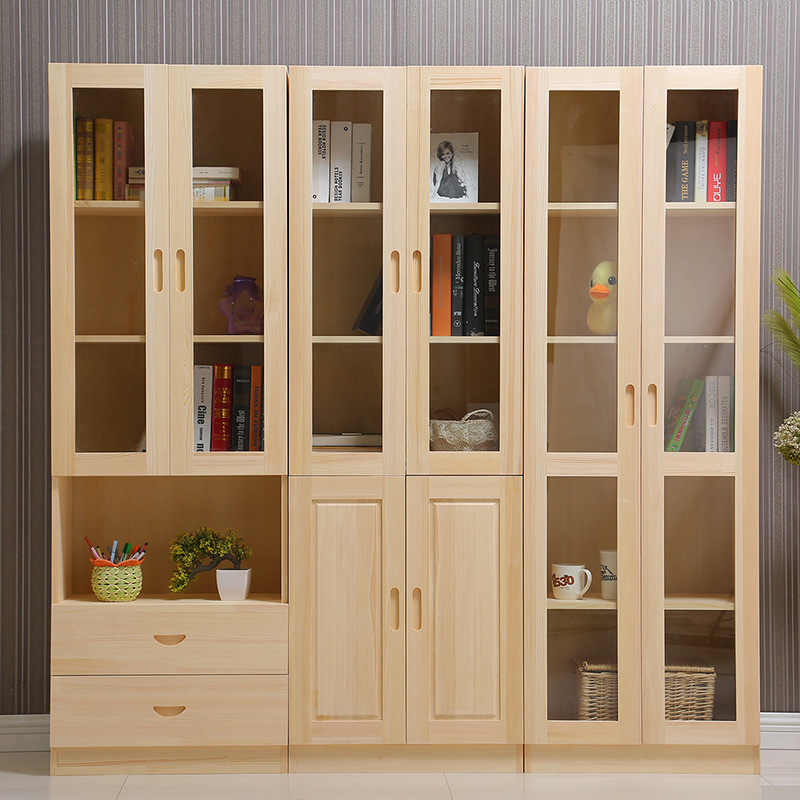 단단한 나무 중국 스타일 책장 어린이 책장 무료 조합 서랍 보관 캐비닛이있는 소나무 유리 문 책장스토어 가기