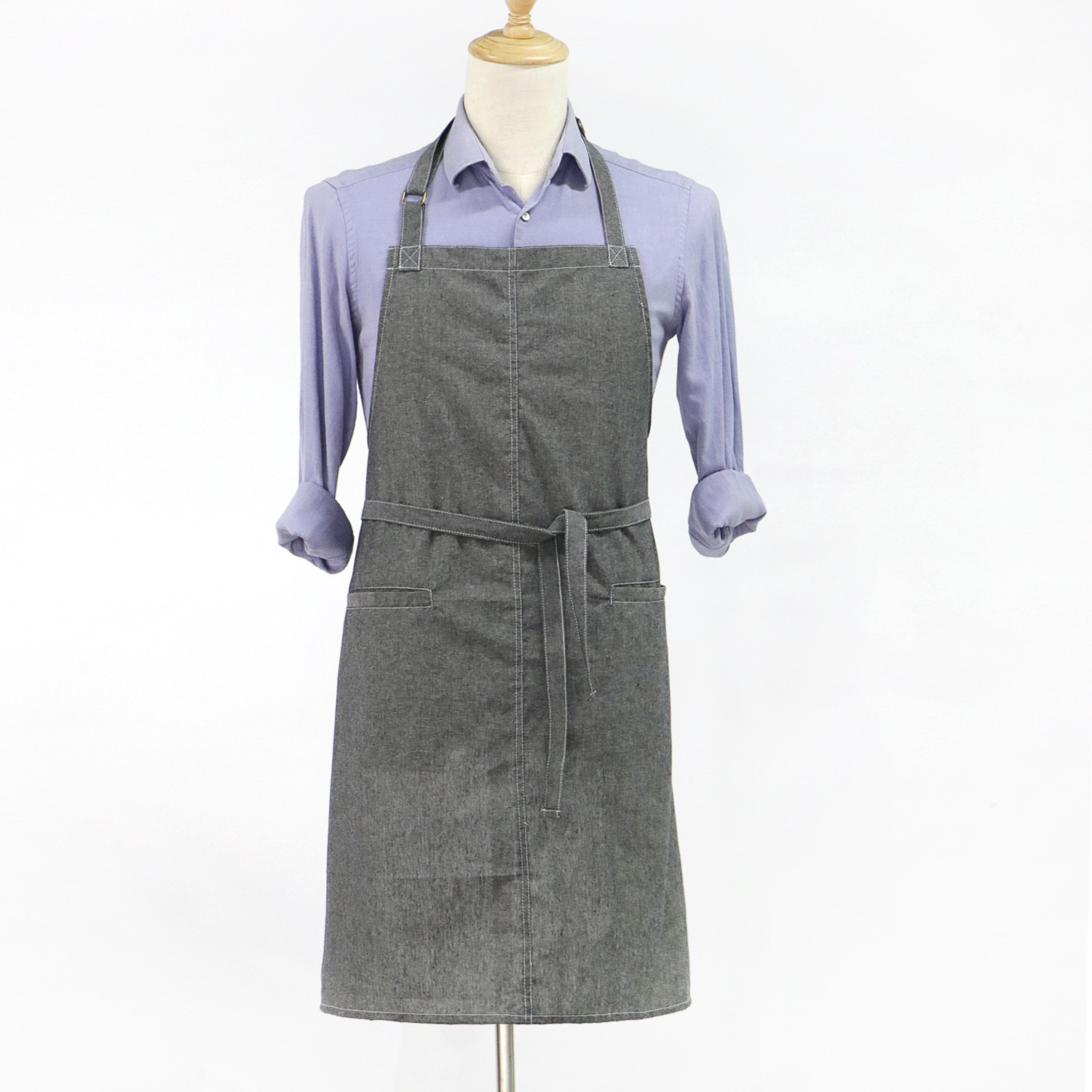 홀터넥 스타일의 검정색 캔버스 앞치마, 카페, 밀크티 가게, 훠궈집, 워싱 데님, 아메리칸 레트로 스타일, 민소매스토어 가기