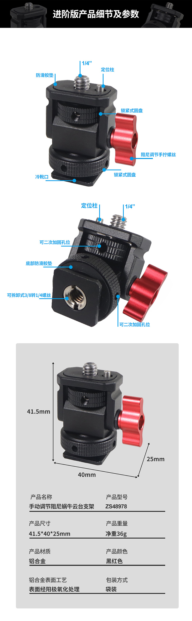 범용 모니터 달팽이 짐벌 미니 콜드 슈 알루미늄 합금 삼각대 나사 어댑터 사진 카메라 액세서리스토어 가기