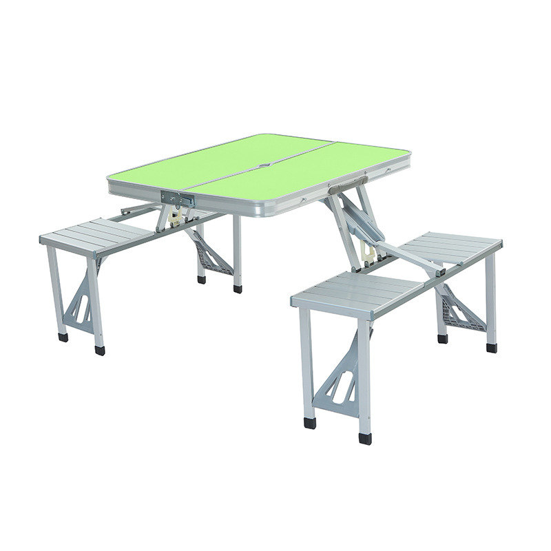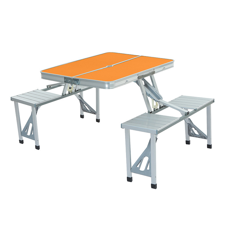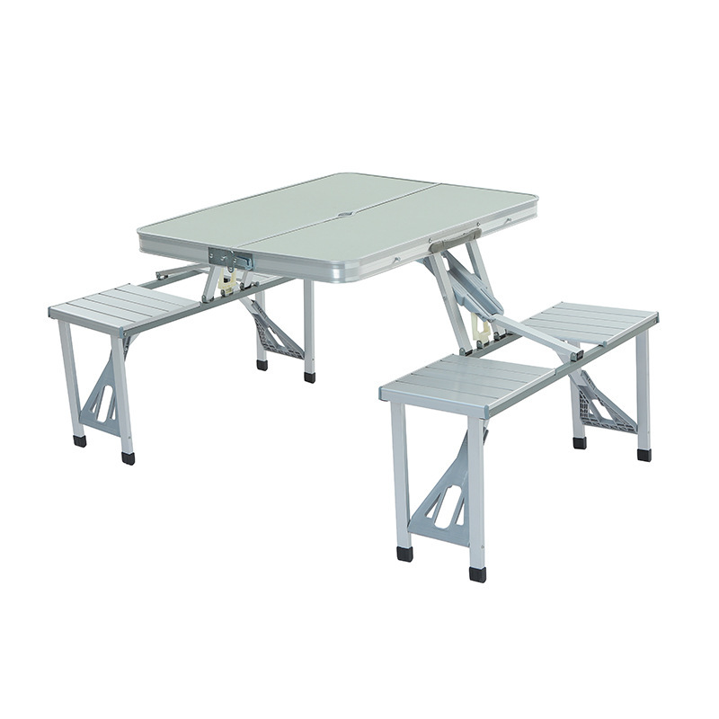 야외 원피스 테이블 및 의자 일체형 캠핑 테이블 야시장 노점 테이블 알루미늄 합금 4 개의 의자가있는 테이블 홍보 테이블스토어 가기