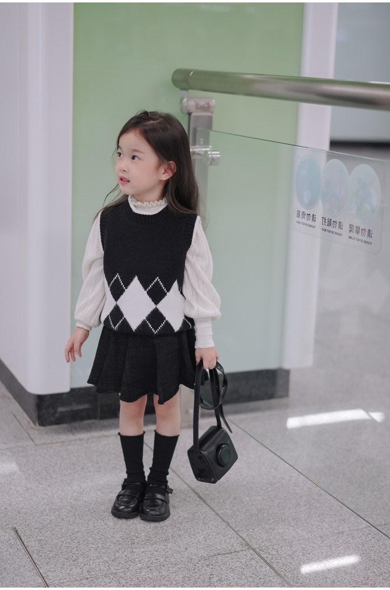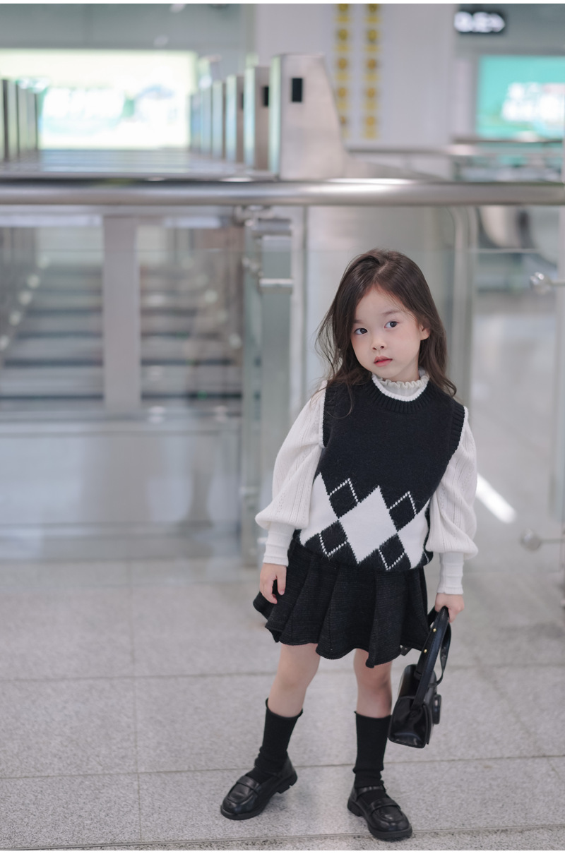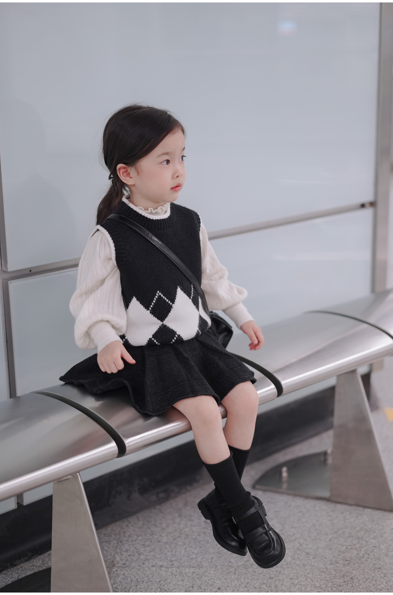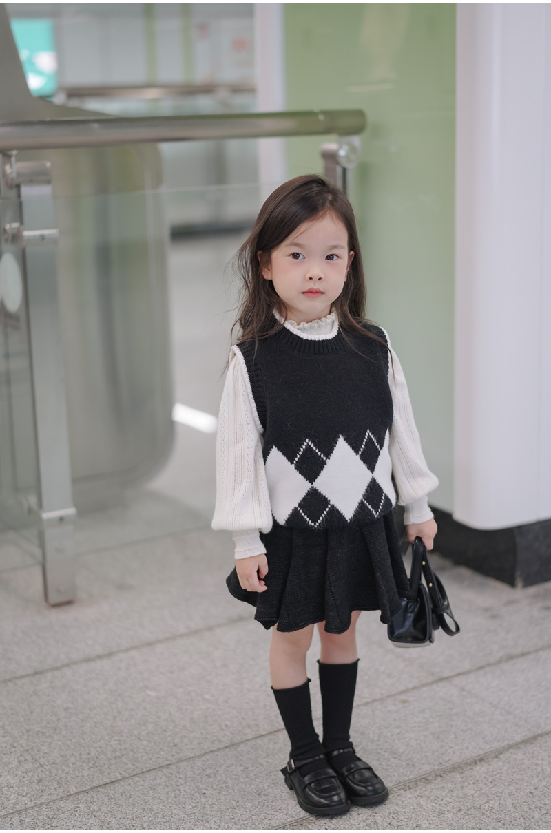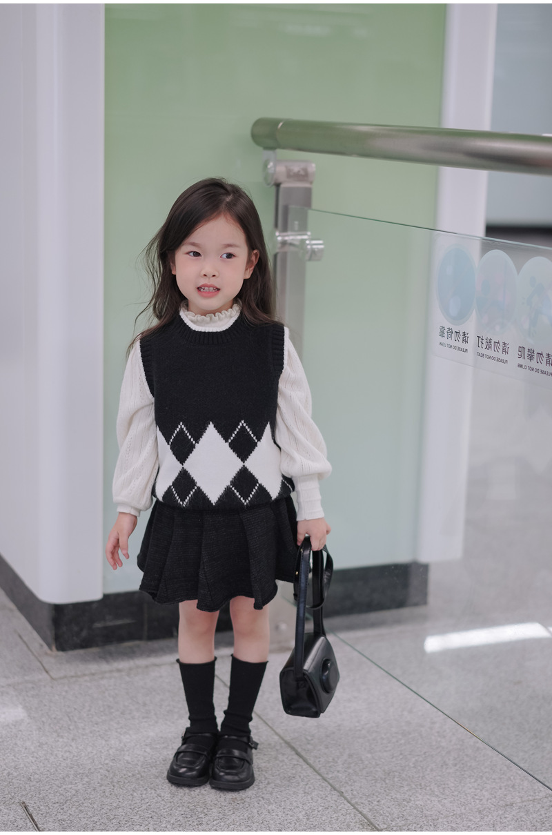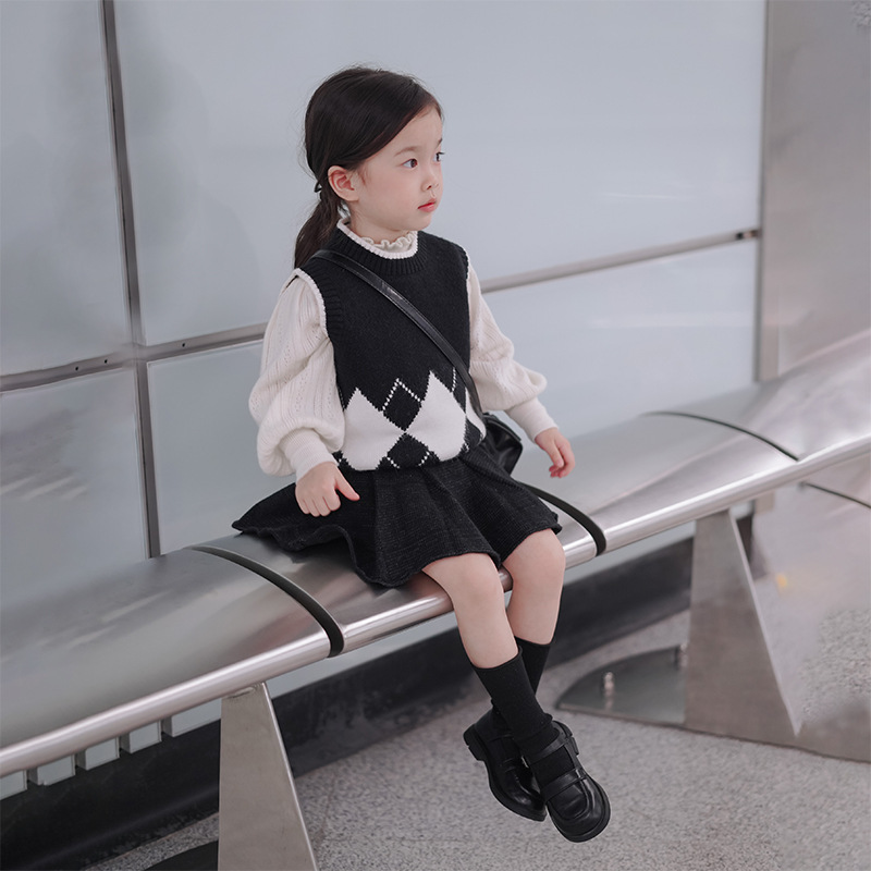 여자 스웨터 조끼 세트 2022 겨울 새로운 흑백 대비 색상 조끼 니트 플리츠 스커트 투피스 세트스토어 가기