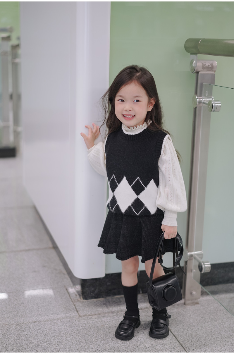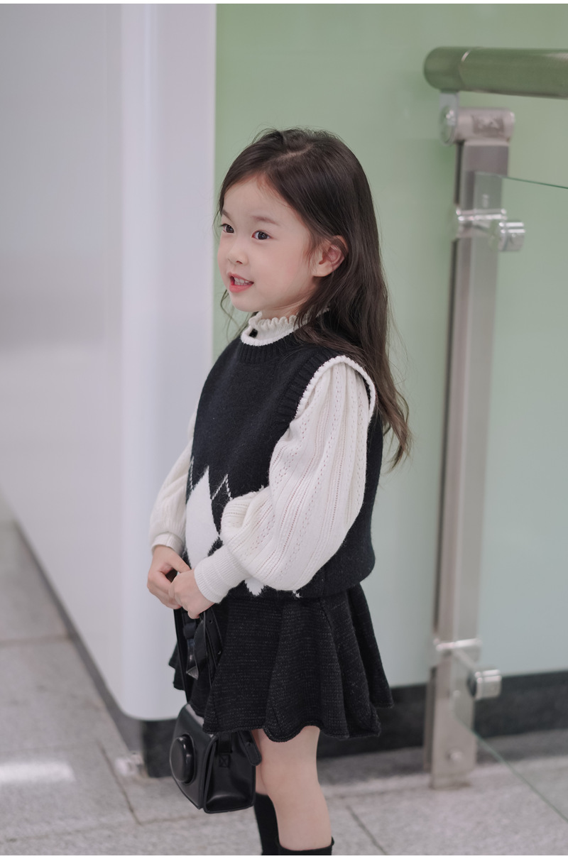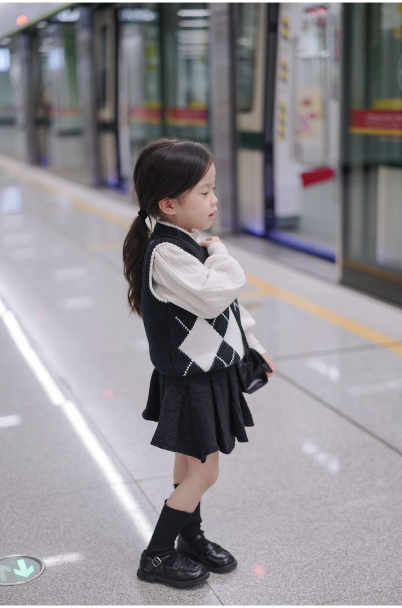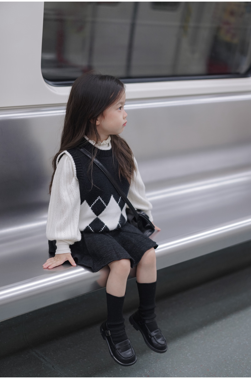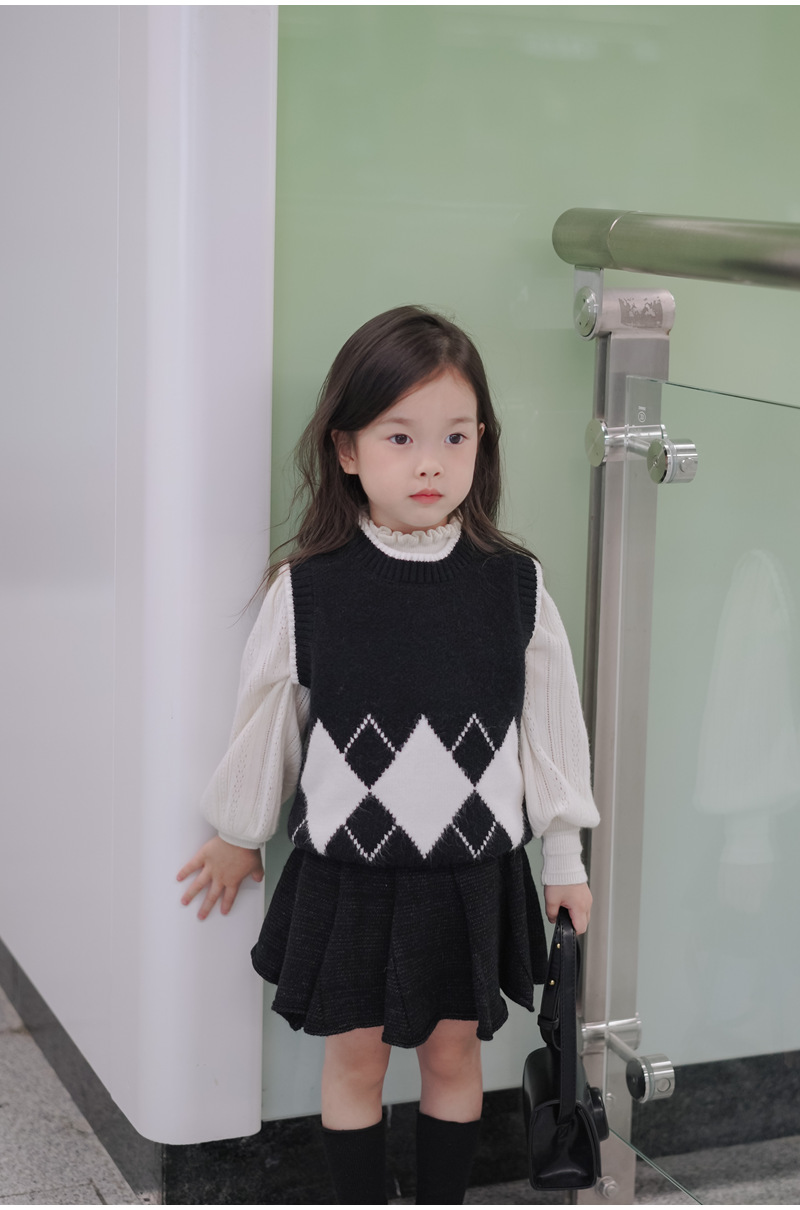여자 스웨터 조끼 세트 2022 겨울 새로운 흑백 대비 색상 조끼 니트 플리츠 스커트 투피스 세트스토어 가기