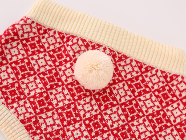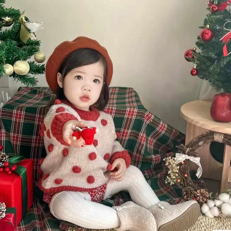儿童羊毛混纺衫立体手工球球圣诞毛衣儿童新年童装批发一手货源