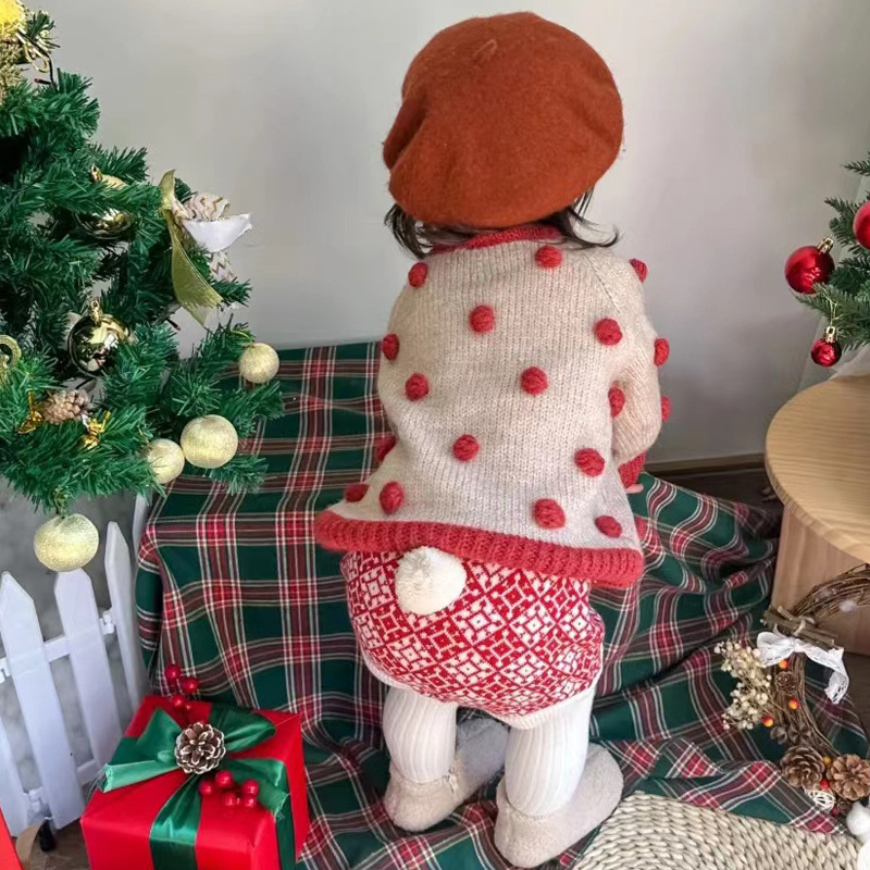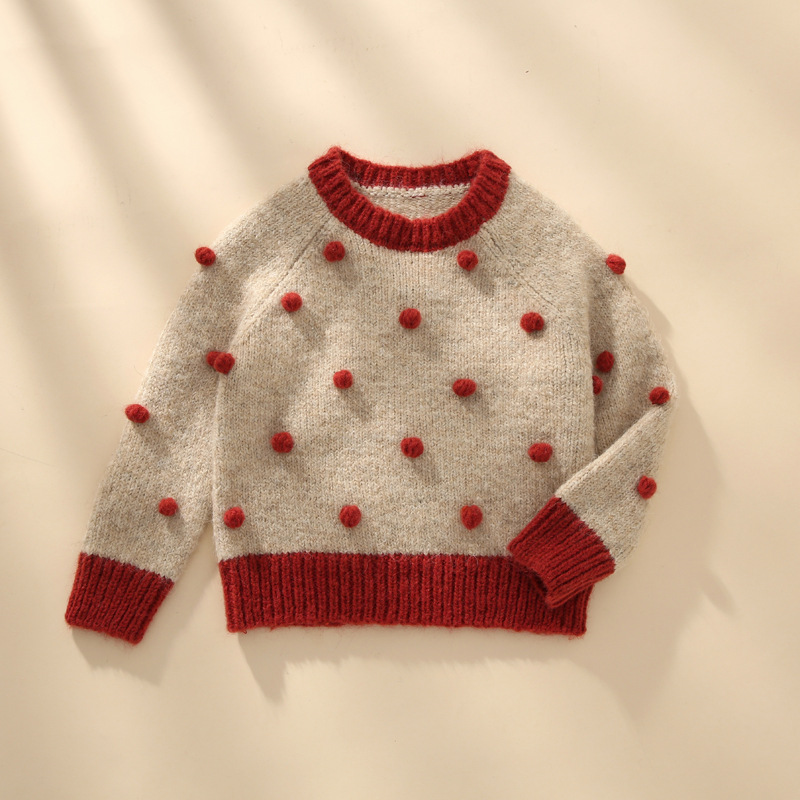 아동 울 혼합 셔츠 입체 수제 볼 볼 크리스마스 스웨터 아동 신년 아동복 도매 1 차 공급