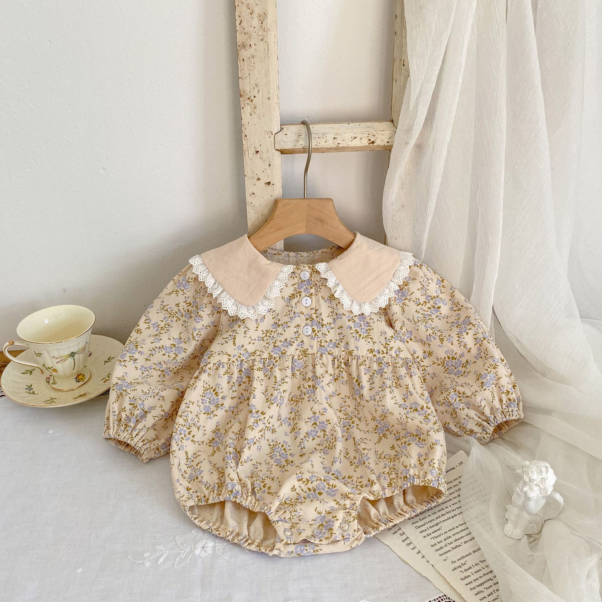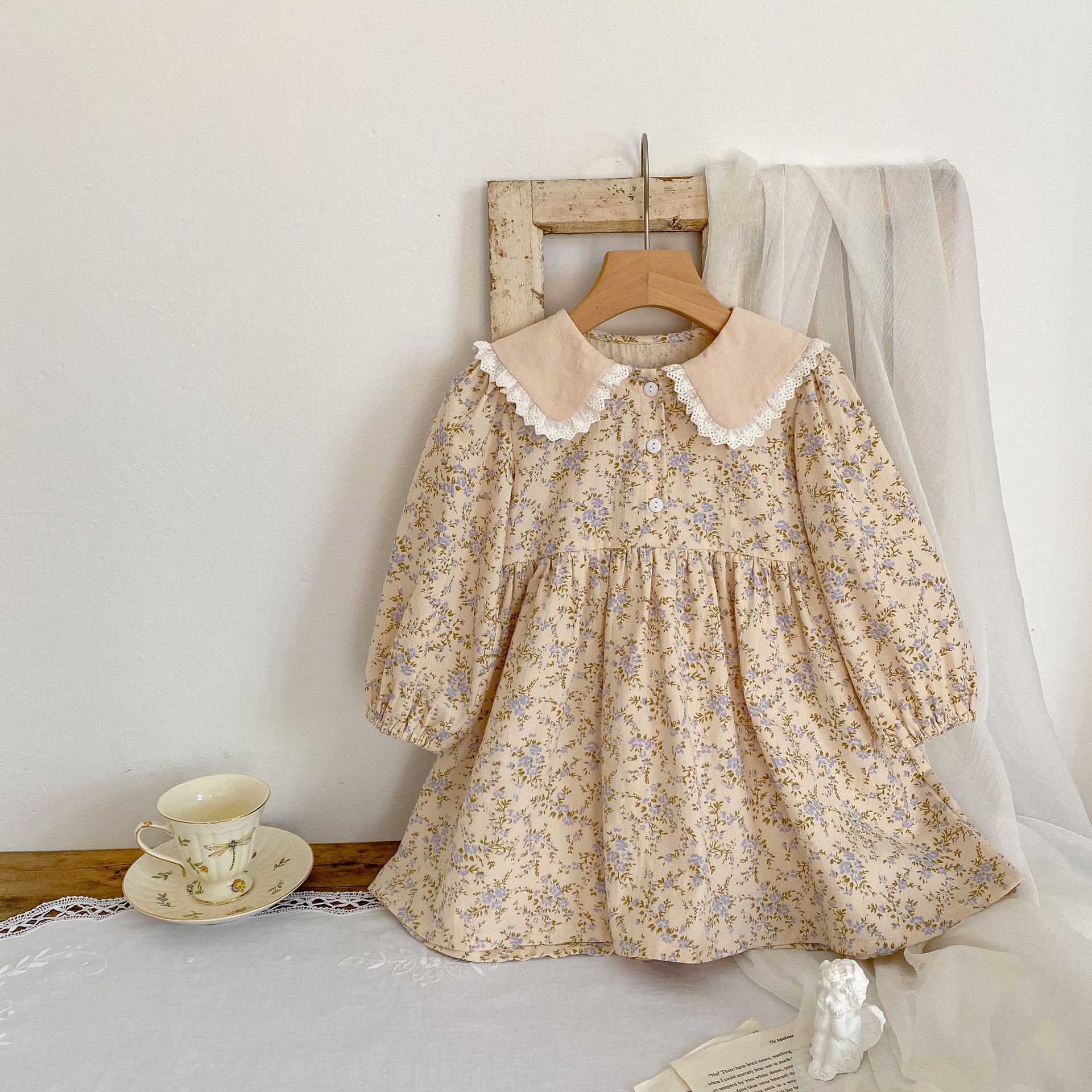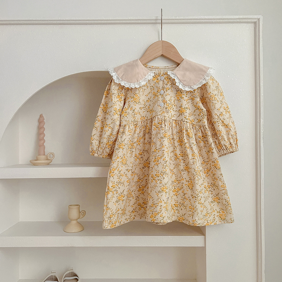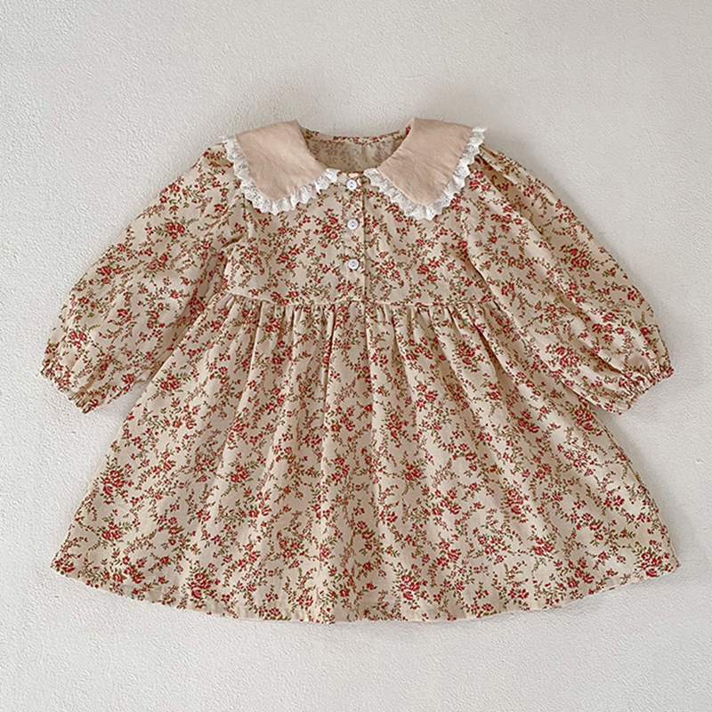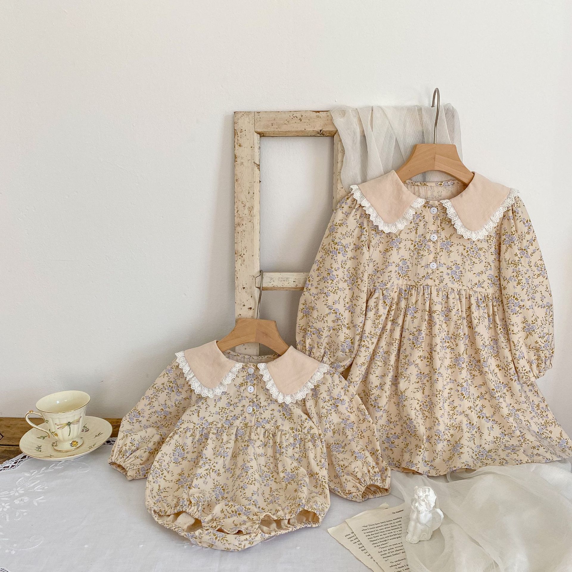 봄과 가을 새로운 한국 아동복 아기 꽃무늬 가운 소녀 레이스 인형 칼라 소녀 드레스 자매 의상스토어 가기
