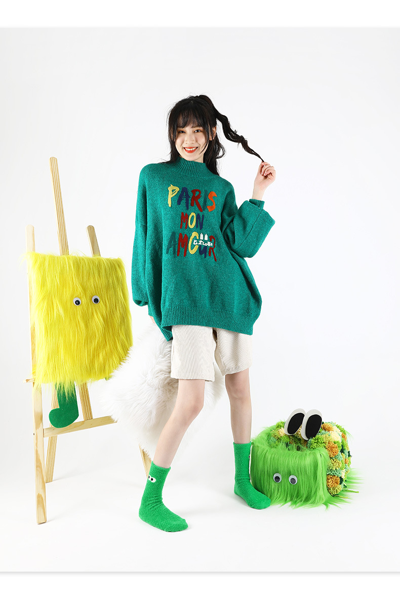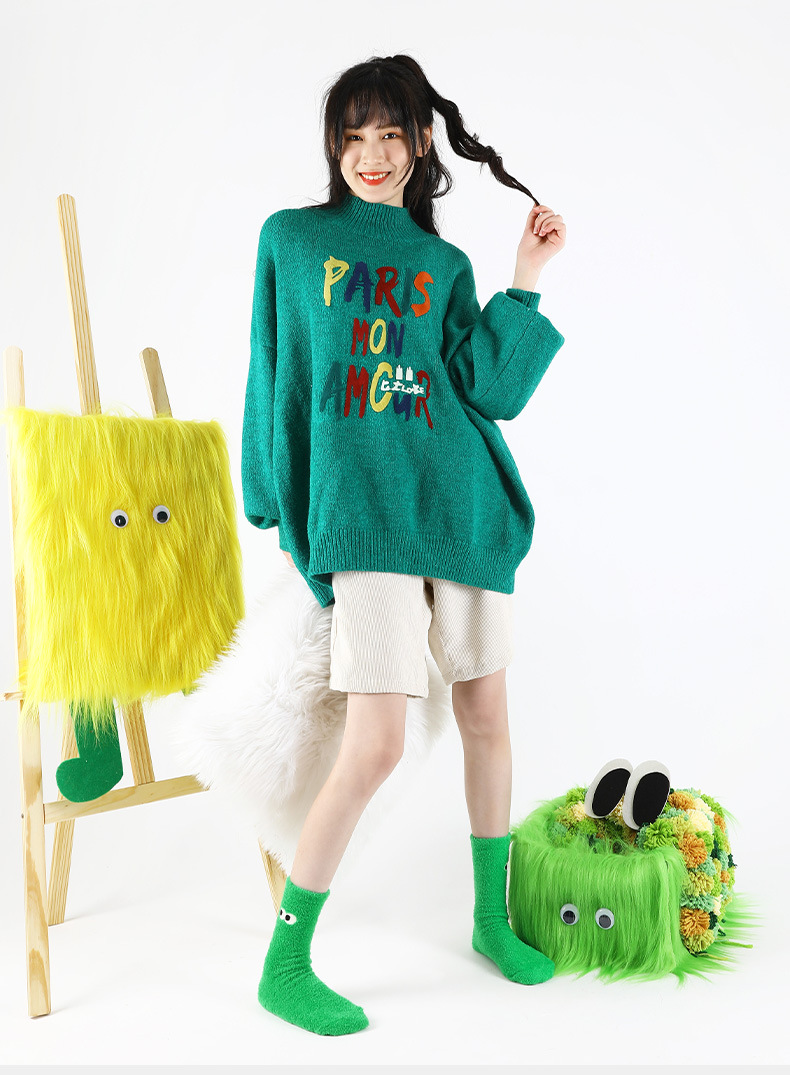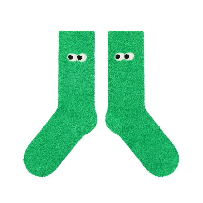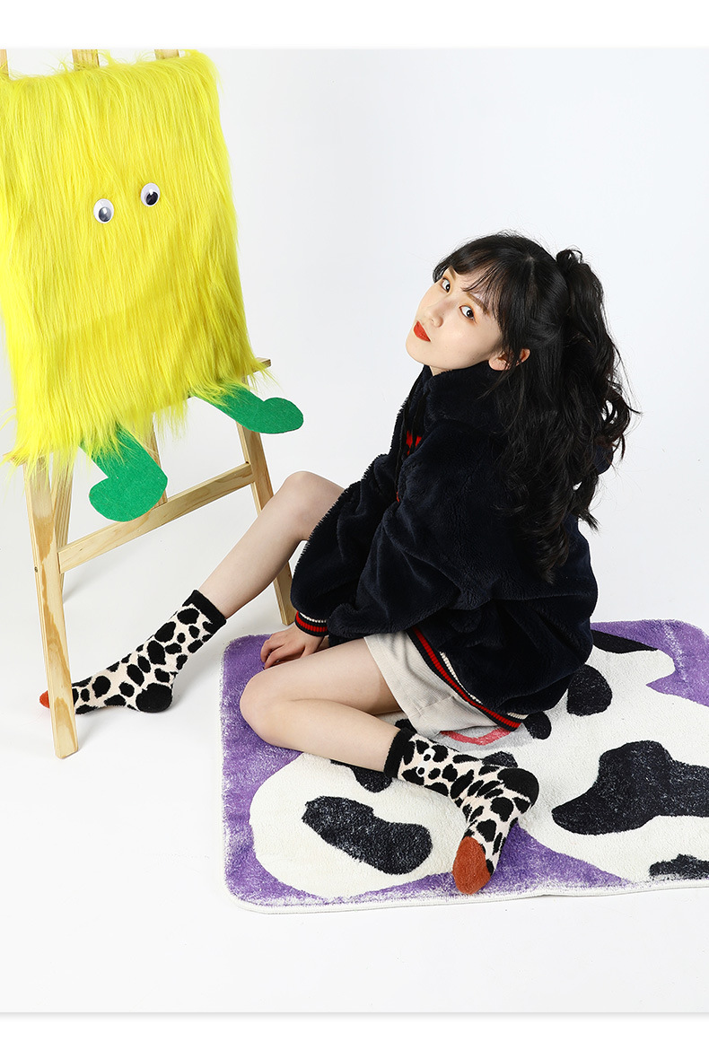 귀여운 봉제 눈 얼룩덜룩 한 암소 가을과 겨울 두꺼운 깃털 원사 부드러운 귀여운 홈 바닥 양말 여성 양말