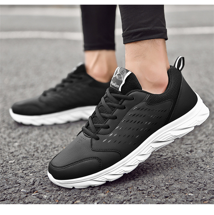 블랙 캐주얼 운동화 가죽 캐주얼 남성 신발 경량 트렌디 소프트 솔 캐주얼 러닝화 학생