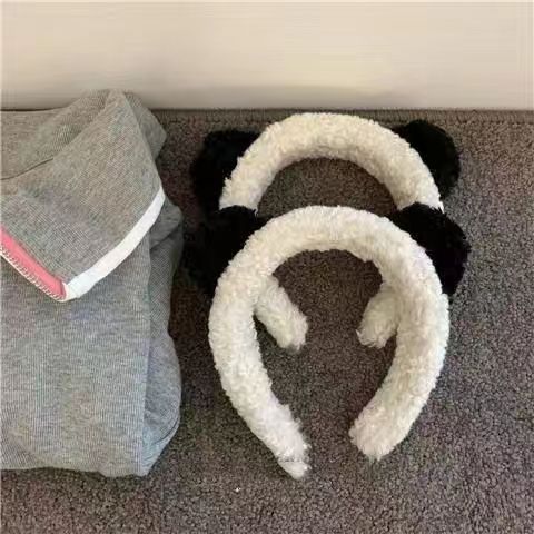 가을과 겨울 봉제 팬더 귀 만화 여자 세차 얼굴 압박 헤어 클립 헤어 밴드 귀여운 달콤한 흑백 머리띠 모자스토어 가기