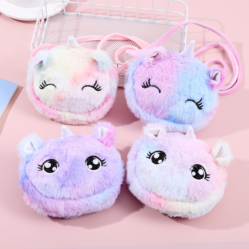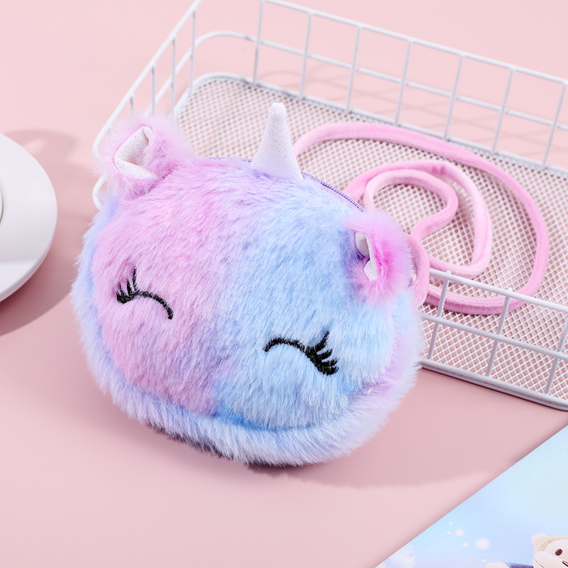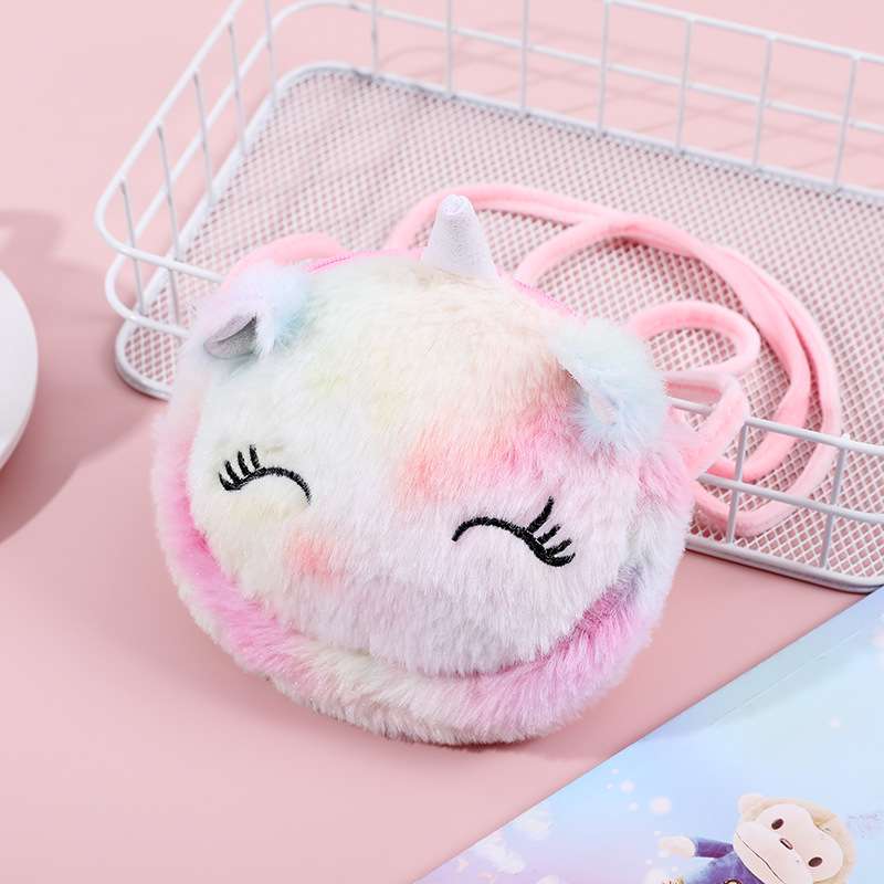 크로스 보더 크리에이티브 플러시 메신저 백 만화 어린이 어깨 가방 라운드 화장품 가방 여성 휴대 전화 보관 가방 도매