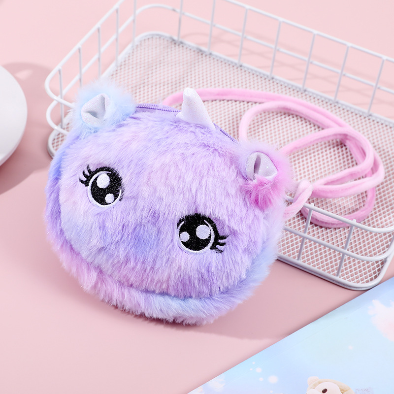크로스 보더 크리에이티브 플러시 메신저 백 만화 어린이 어깨 가방 라운드 화장품 가방 여성 휴대 전화 보관 가방 도매스토어 가기