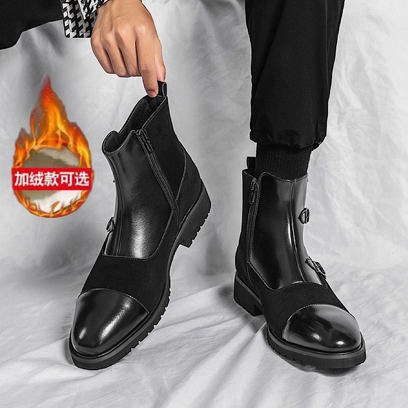 봄과 가을 남자의 하이탑 가죽 부츠 영국 패션 캐주얼 따뜻한 남성 신발 모든 경기 첼시 부츠 기모 마틴 부츠스토어 가기