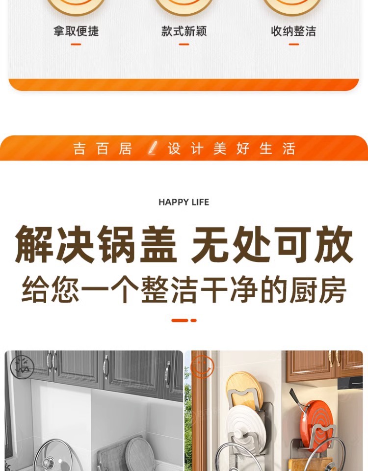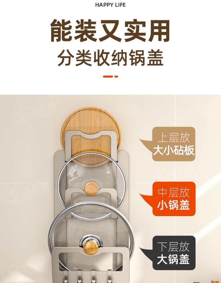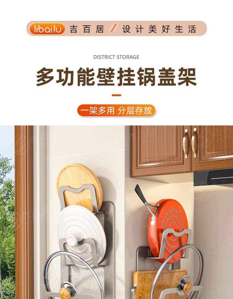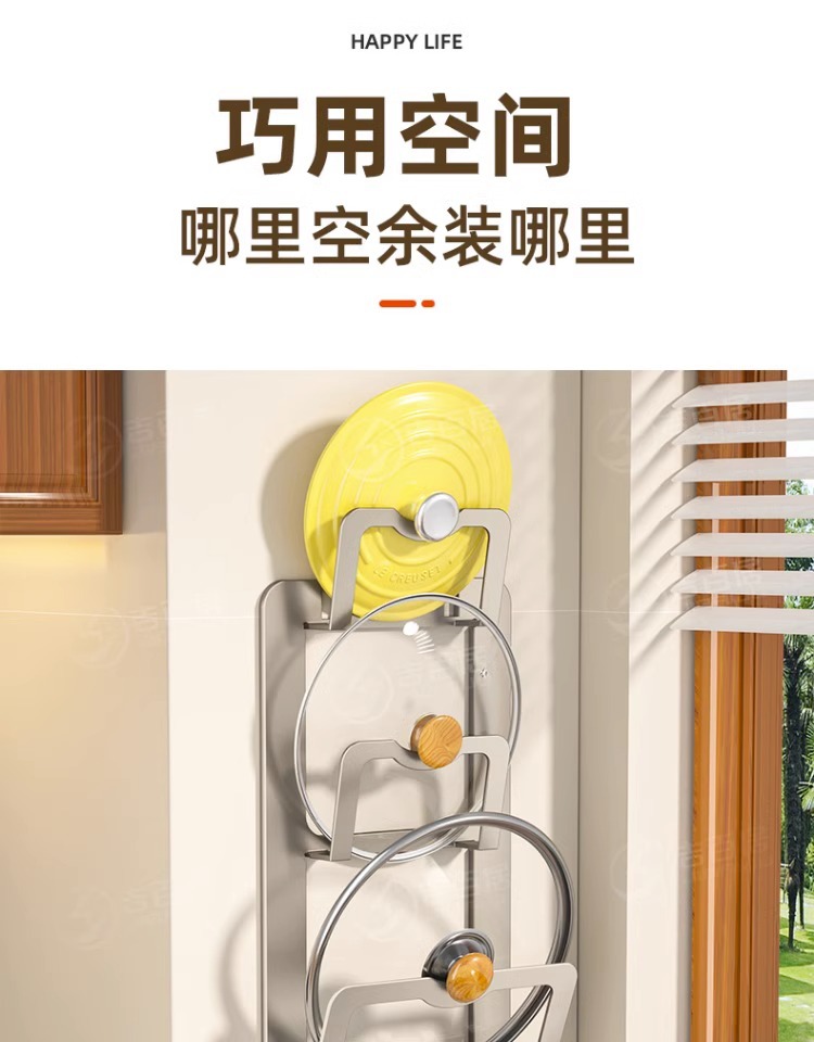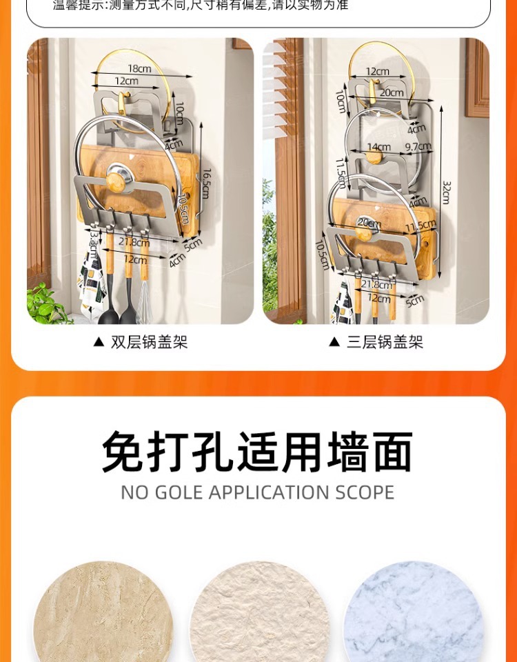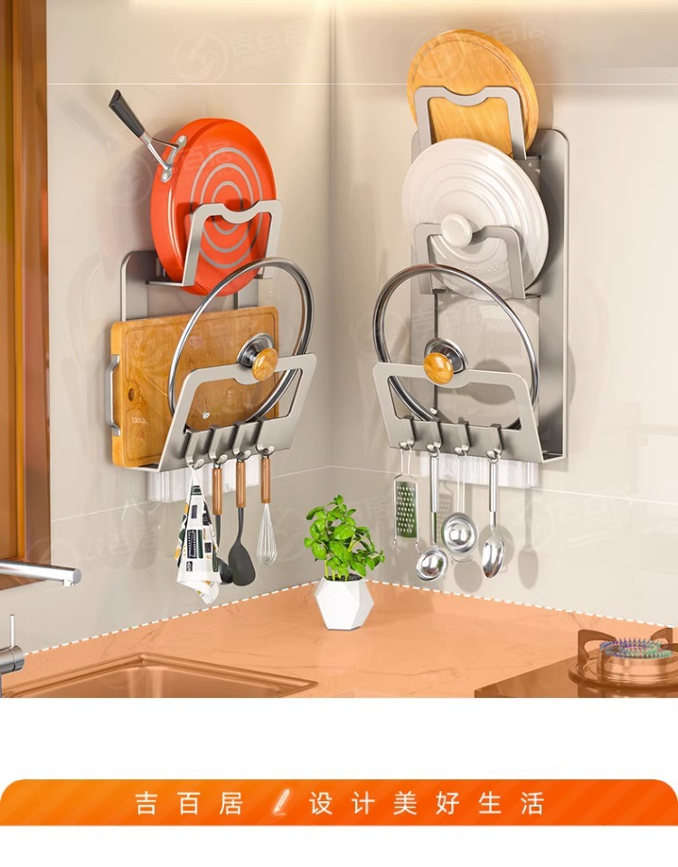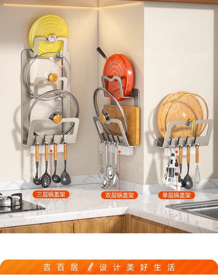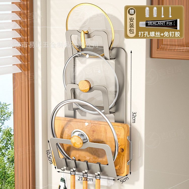 냄비 커버 선반 벽걸이 형 주방 수납 랙 도마 배치 랙 펀치 프리 벽 수납 랙 냄비 커버 유물