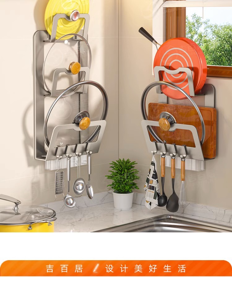 냄비 커버 선반 벽걸이 형 주방 수납 랙 도마 배치 랙 펀치 프리 벽 수납 랙 냄비 커버 유물스토어 가기