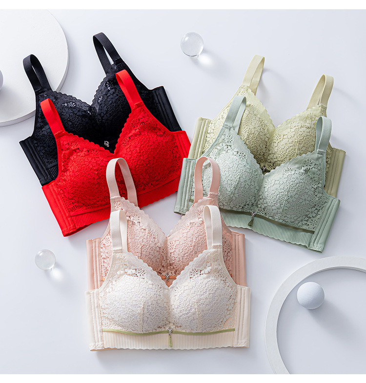 823 #2023 봄과 여름 새로운 느낌 매우 부드러운 ~ 노 스틸 링 작은 가슴 섹시 브라 레드 두꺼운 속옷 도매스토어 가기