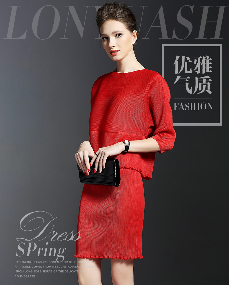 미야케 플리츠 2025 봄 신작 여성 여성스러운 슬림 솔리드 컬러 플리츠 드레스 힙 커버 슈트 스커트