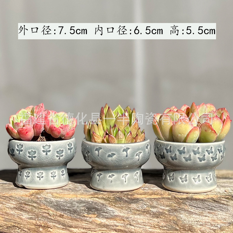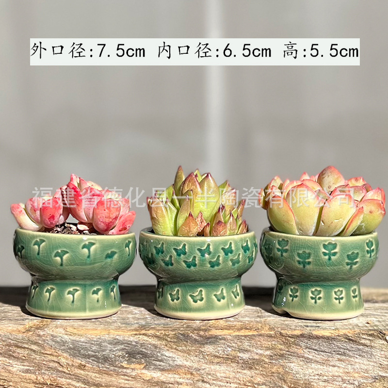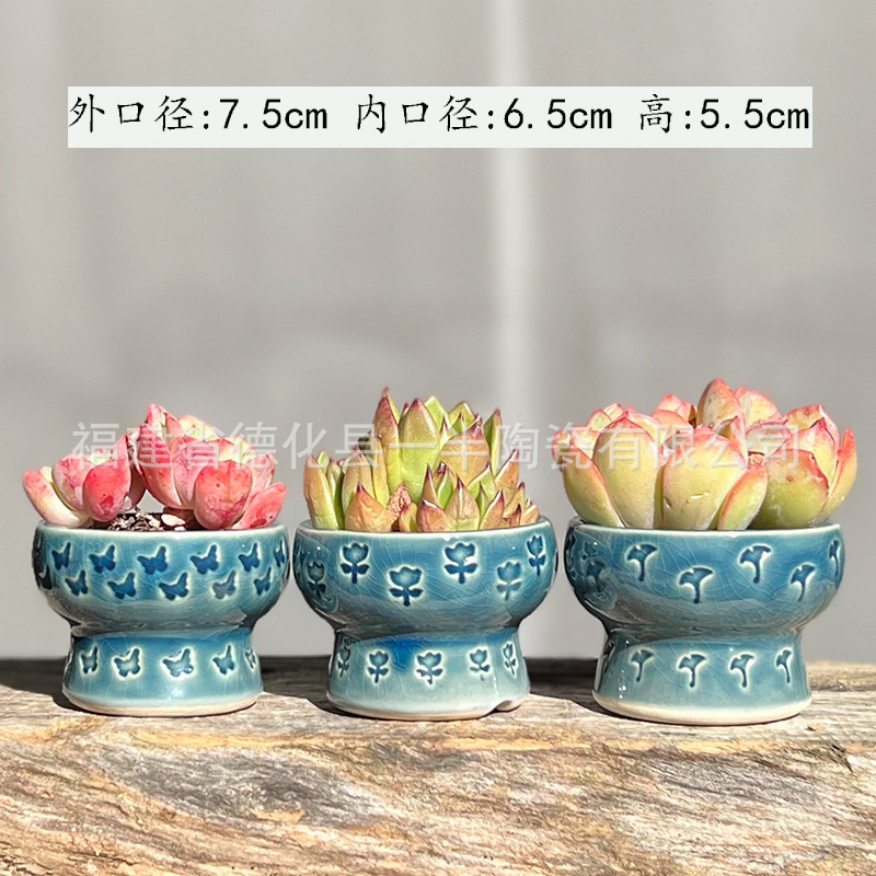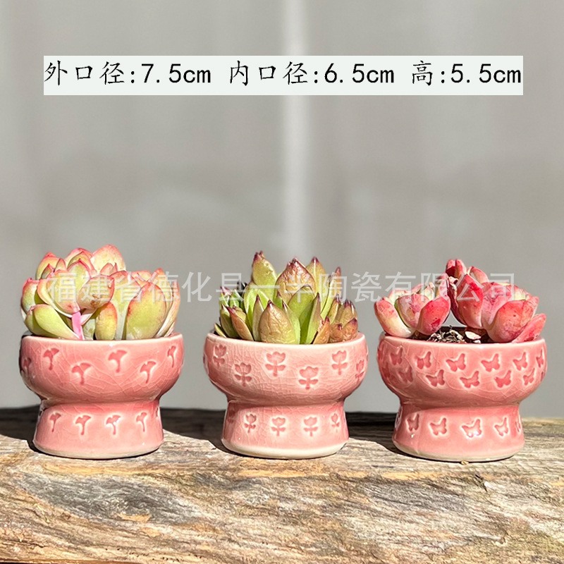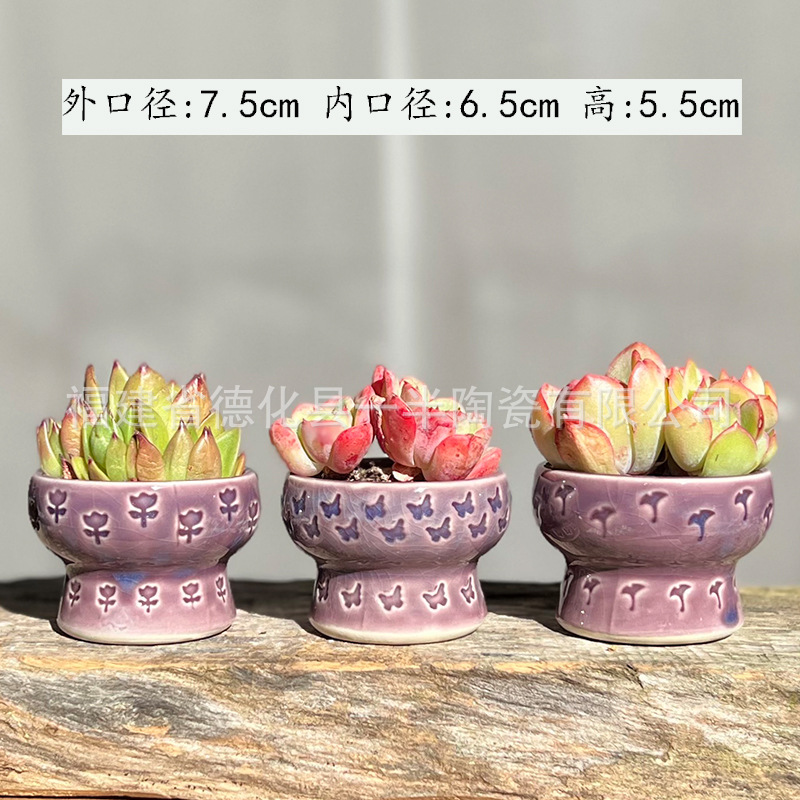 작은 구경 우표 살찐 꽃 냄비 흐름 유약 얼음 균열 뜨거운 냄비 둥근 냄비 세라믹 수제 꽃 냄비 신선한 단일 머리 사탕 색상
