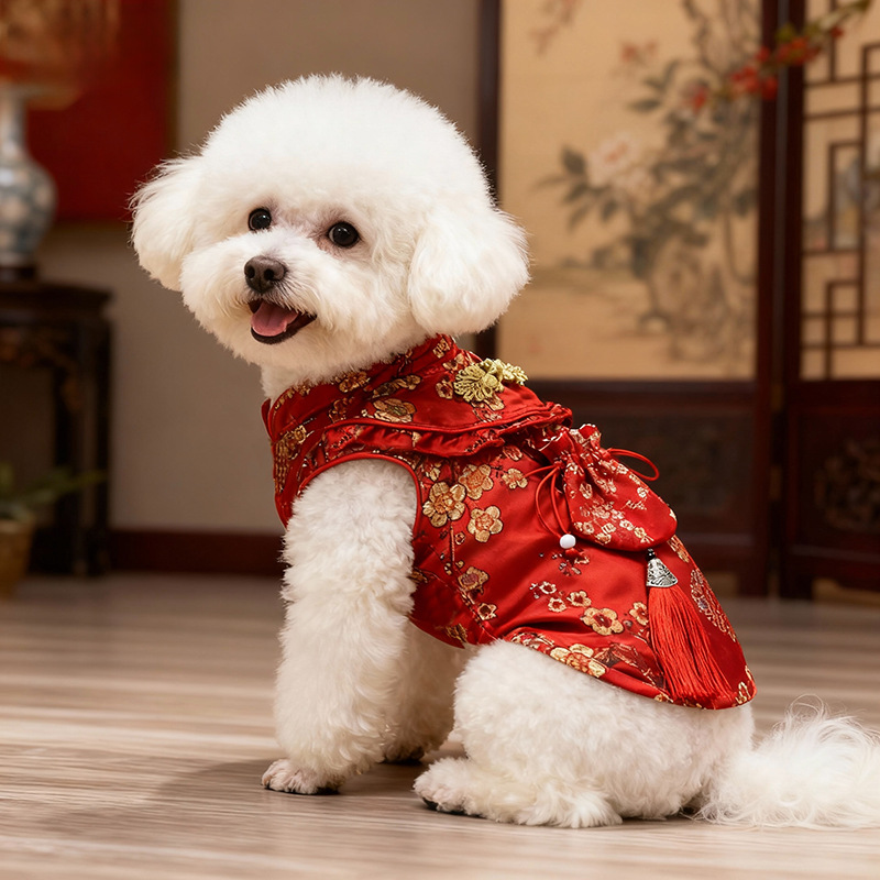 宠物新年衣服 过年喜庆福袋唐装旗袍款中小型犬泰迪,厂家直销