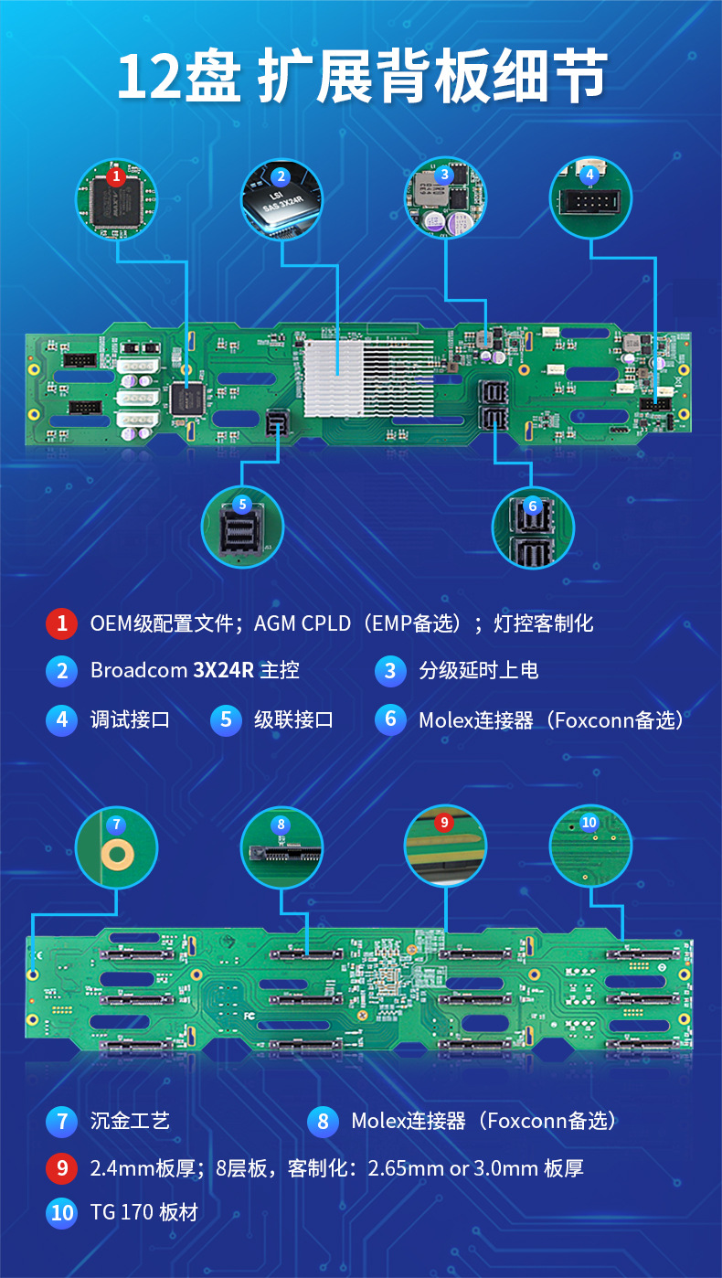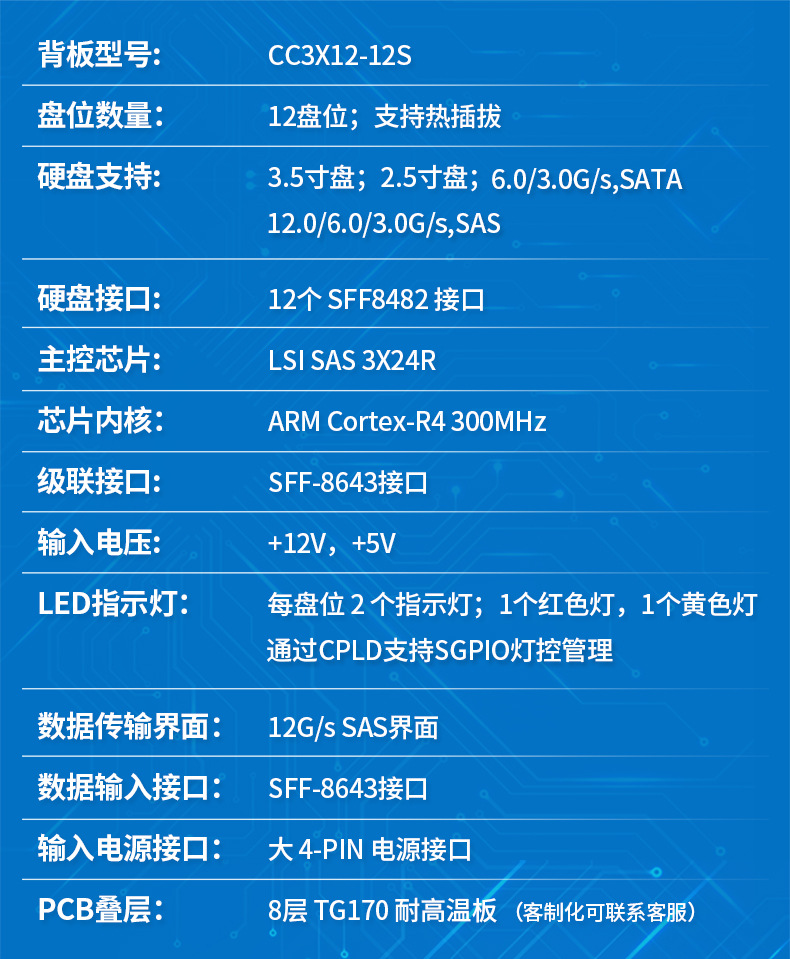 CC3X12-12S 2U 12베이 랙 마운트 섀시 SAS/SATA 확장기 백플레인 사용자 정의
