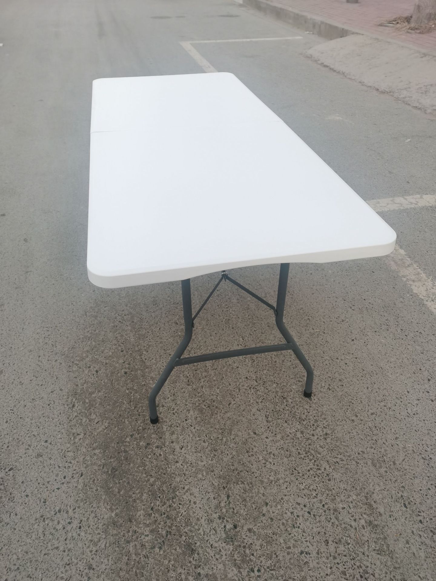 1.8m 국경 간 뜨거운 판매 야외 플라스틱 접이식 테이블 회의 긴 스트립 블로운 성형 테이블 야시장 스톨 연회 식탁