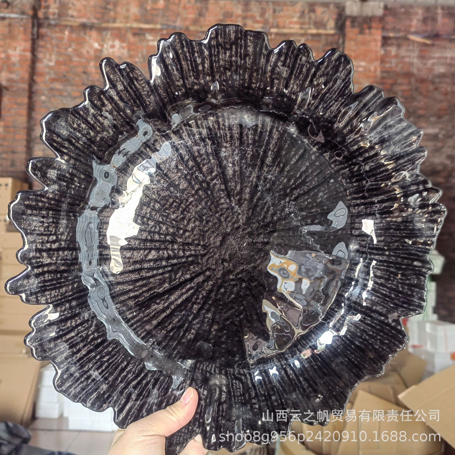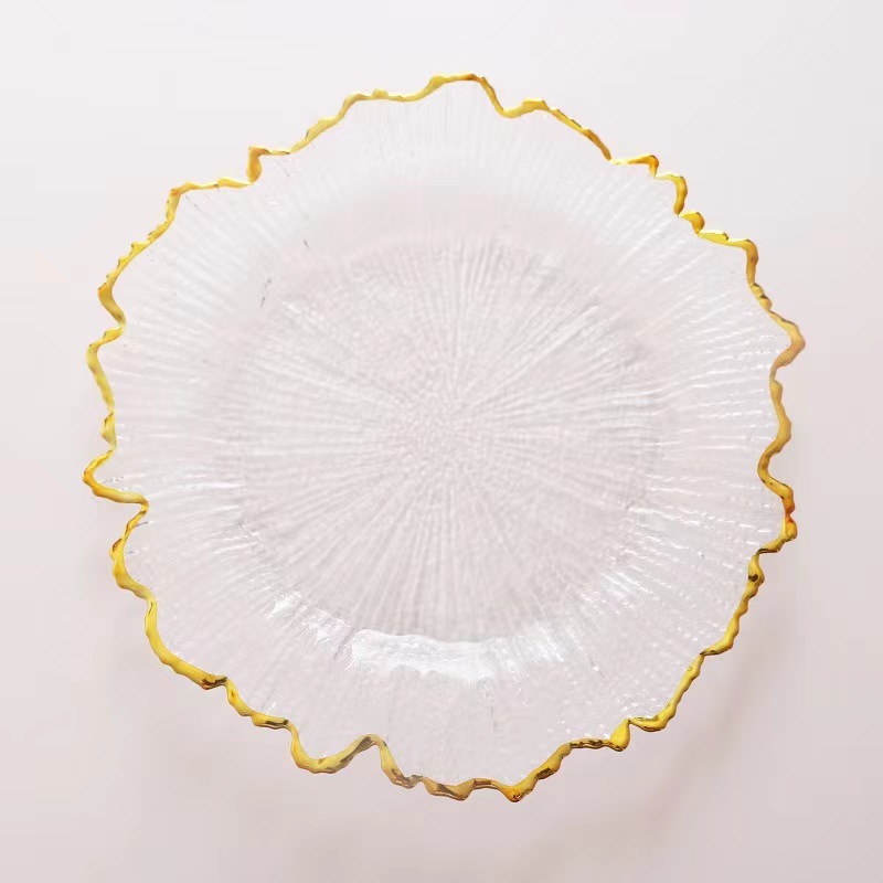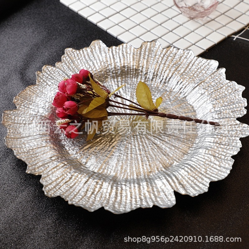 해바라기 유리 접시 불규칙한 황금 유리 접시 실버 눈송이 접시 수직 패턴 서양 음식 접시